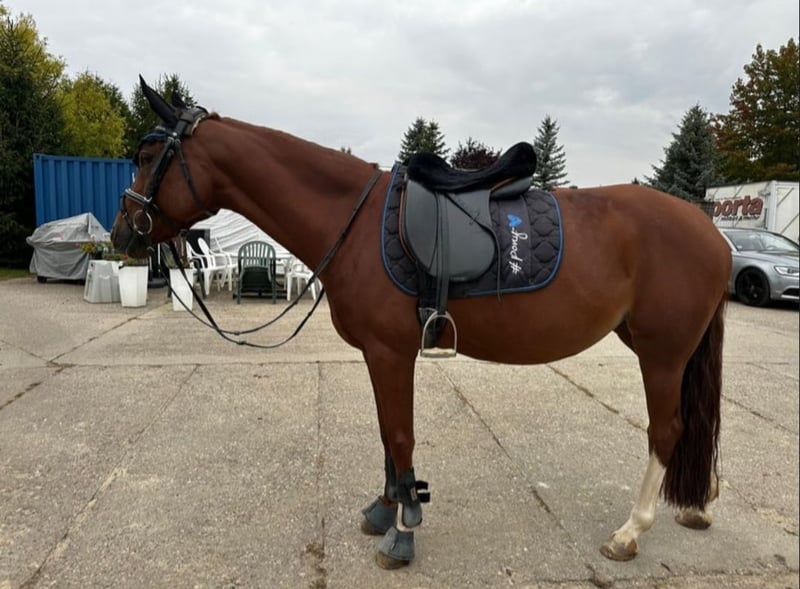 For sale is our charming and talented riding pony mare, born in 2017. With her beautiful chestnut coat and an approximate height of 14.1 hh, she is the ideal partner for talented riders and pony enthusiasts. Our show jumping star impresses with her excellent movement and suitability for dressage, but she also enjoys jumping very much. She is well-behaved, well-trained, and has a friendly temperament, making her an ideal pony for young riders. However, she is not suitable for beginners. Our show jumping star is healthy, regularly dewormed, and vaccinated against influenza, herpes, tetanus, and West Nile virus. Her teeth are checked annually (most recently in September 2025). Due to a lack of time, she is looking for a new, loving home where she can continue to be supported and challenged.