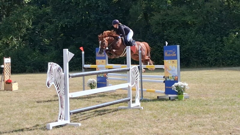 *Sales Advertisement: German Riding Pony Mare* Kiki is a brave and at the same time ambitious German Riding Pony mare. She has been with us for the last 4 years, and now it is time to explore new paths. She has been successful and placed in show jumping from E to L 115 with our daughter, and has also successfully competed in cross-country tests up to A*. Most recently, she has been placed against warmbloods at 110 and 115. Kiki is extremely brave and always jumps! Really! In the 4 years we have owned her, she has never refused! Kiki enjoys going to the pasture with other horses and is very well-behaved with the farrier, veterinarian, and during loading. Kiki is both spirited and very obedient. You can even ride her out in the field with a neck ring at a walk. We would be happy to find a little rider who enjoys her as much as we do. There are very good X-rays from 2021; new images/ vet check can be done at the buyer's expense if there is serious interest. For sale is a charming, talented mare from the breed of German Riding Ponies. **Details:** - **Breed:** German Riding Pony - **Gender:** Mare - **Year of Birth:** 2016 - **Color:** Chestnut - **Height:** 146 cm If you are interested or need more information, please feel free to contact us. We look forward to your inquiry!
