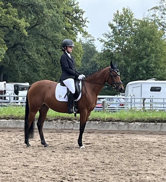 German Riding Pony Mare for Sale For sale is an elegant and talented German Riding Pony mare, born in 2016. She is bay and measures 146 cm at the withers. This mare is ideally suited for dressage and impresses with her refinement, willingness to learn, and pleasant temperament. She is well-trained, reliable in handling, and shows great potential for an ambitious rider. Whether for competition or leisure riding, this mare is a dependable partner. If you are interested or have any questions, please feel free to contact me. Viewing and trial rides can be arranged by appointment.