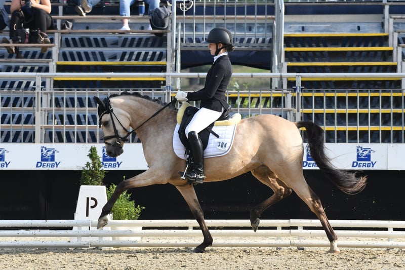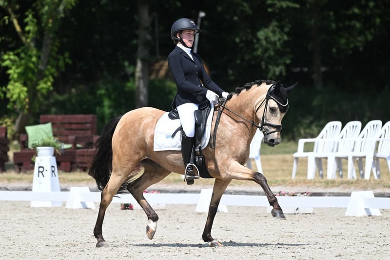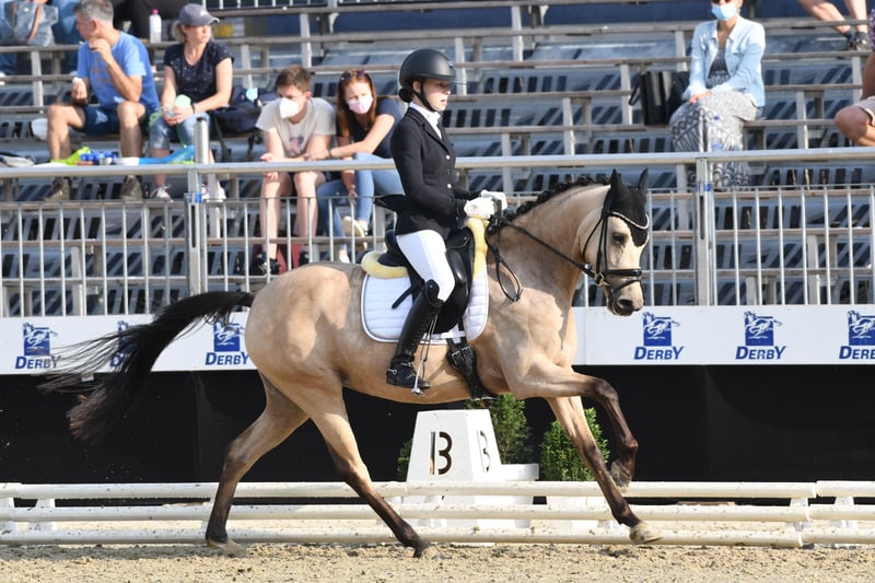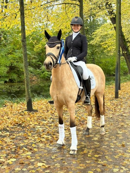 Zum Verkauf steht eine 9-jährige Ponystute, die sowohl durch ihr attraktives Erscheinungsbild als auch durch ihre hervorragende Arbeitseinstellung begeistert. Die Stute präsentiert sich äußerst engagiert, lernwillig und motiviert. Unter dem Sattel ist sie stets aufmerksam, arbeitsfreudig und zeigt ein ausgeprägtes Bestreben, ihrem Reiter zu gefallen. Ihr ausdrucksstarker Bewegungsablauf in Kombination mit einem natürlichen Go verleiht ihr beste sportliche Voraussetzungen. Besonders hervorzuheben ist ihre Eignung für die FEI-Pony-Tour – ein qualitätsvolles Sportpony mit klarer Perspektive für ambitionierte Reiterinnen und Reiter.