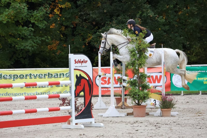 For sale: German Riding Pony mare – ideal for ambitious riders! This elegant grey mare was born in 2017 and impresses with her excellent pedigree and friendly temperament. Standing at 14.8 hh, she is perfect for riders seeking a reliable and versatile horse. She demonstrates great talent in jumping and already shows impressive performance in this discipline. Her agility and jumping ability make her a promising partner for competition or demanding leisure riding. Please feel free to contact me for more information or to arrange a viewing. A wonderful horse for those looking for a dependable and talented riding pony!