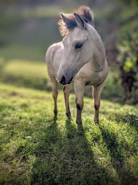 Sportlich, elegantes Deutsches Reitpony Stutfohlen in Sonderfarbe Braunisabell. Wenn alles passt, würden wir unsere La vida Loca geboren am 12.Mai 2025 in liebevolle Hände abgeben. Loca ist ein sehr agiles und aufgewecktes Fohlen mit viel go. Ihre Mutter zeigt schon eine sehr hohe Leistungsbereitschaft und wird dies sicherlich an ihre Tochter weitergeben. Endmaß ca. 1.48m . Hufe geben, Schmied, Hänger fahren und abspritzen sind kein Problem . Außerdem läuft sie schon brav bei Ausritten mit . Loca könnte im November ausziehen und besitzt volle Papiere vom Hessischen Pony Verband . Die letzen Bilder sind vom Vater, Reifenstein vom Alten Grenzhof , Welsh Cob, süddeutsch gekört. Das letzte Bild zeigt ihren Vollbruder von letztem Jahr.