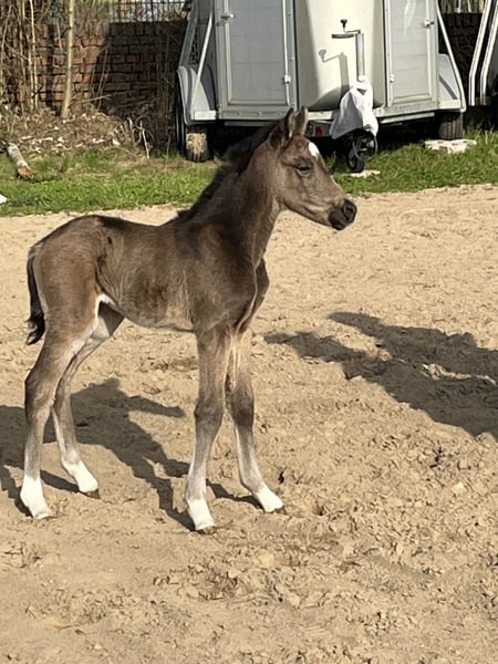 Feenstaup ist im März auf die Welt gekommen und wir waren sofort alle verliebt in die Maus sie verzauberte uns alle hier jeden Tag. Ihr Vater Gold Garant war mehrfach Bundes Championats Sieger der seine reit Qualität und seine überragenden Bewegungen weiter gibt. Franka ihre Mutter ist Staatsprämien Stute die immer super schicke und sportliche Fohlen gemacht hat wie auch wider bei der Maus. Wer also ein Sportliches Pony Fohlen mit einem super Charakter sucht ist bei Feenstaub genau richtig.