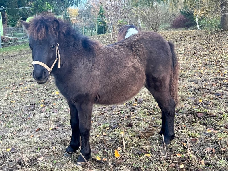 Unser diesjähriges Fohlen sucht nach dem Absetzen im November ein neues Zuhause. "Janikos Just in Black " zieht natürlich mit vollen Papieren vom Pferdezuchtverband MV, entwurmt und auf Wunsch auch geimpft in sein neues Heim. Justi wurde am 02.05.2025 geboren und ist ein Dt. Classic Pony, mit seiner Rappfarbe ist er somit ein kleiner Hingucker, er wird noch Tigern, Hufe bekommen schon weiße Streifen. (Lt. Gentest Tigerträger) Er wächst in Weide- bzw Offenstallhaltung auf, kennt auch Großpferde, ist E-Zaun sicher, Schmiede- & Verladefromm. Unsere Ponys bekommen mittels Blutbild angepasstes hochwertiges Mineralfutter. Seine Voraussichtliches Endmaß wird um die 110cm liegen, da er jetzt bereits schon 90cm groß ist und gerade wieder stark überbaut. Auf dem Elitefohlenchampionat MV könnte er sich die begehrte Elitefohlenprämie ertragen: Typ 9 - 9 - 9 Exterieur 9 - 9 - 9 Bewegung 9 - 9 - 9 Ab Dezember geht er in die Hengstaufzucht. Beide Hoden sind abgestiegen!