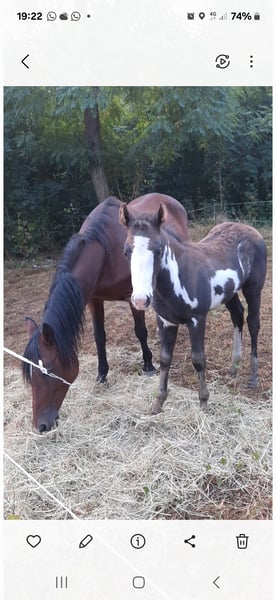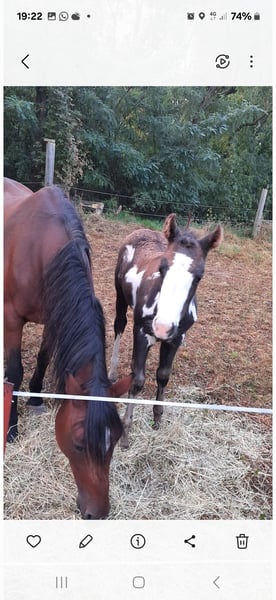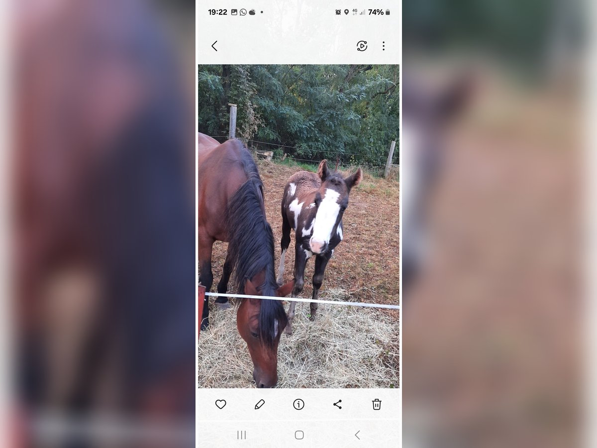 Ponystute größe ca 142 cm Pass chip ist von Kindern in Wald und Koppel geritten worden hat aber keine Ausbildung ist ein und zweispännig gefahren hat turniererfahrung geb 2006 Kern gesund fohlen geb 25.7.2025 der Vater reiner QH 154cm aufn Bild zu sehen EM ca 148 cm von fohlen Videos per wats ap läuft auch an der Kutsche mit