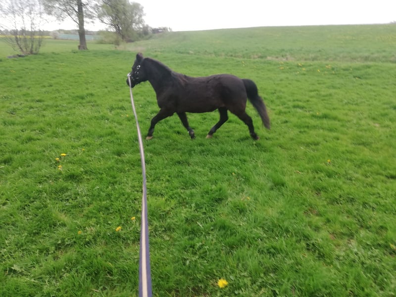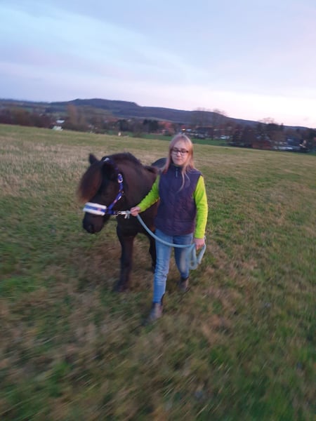 Leider müssen wir uns von unserem Classic Pony Wallach trennen,da unsere Töchter aus ihm heraus gewachsen sind.Er ist super artig im Umgang,hier können auch schon die kleinsten putzen und führen.Er ist unerschrocken im Gelände und läuft sowohl alleine als auch in der Gruppe.Auch an der Longe ist er artig.Meine Kinder sind ihn auch frei geritten.Er hat durchaus Go,ist aber immer händelbar und möchte gerne arbeiten. Er ist leichtfuttrig,stand bei uns trotzdem mit auf der Weide. Er zieht mit seinem kompletten Equipment aus.