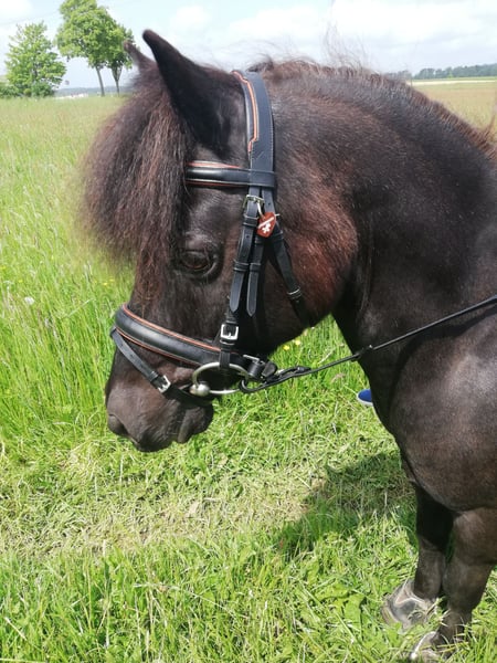 Wir verkaufen einen super lieben,artigen Classic Pony Wallach.Leider sind unsere Kinder aus ihm heraus gewachsen und wir würden uns freuen,wenn er nochmal ein Kind zum strahlen bringt.Er ist verträglich mit allen Pferden und geht jedem Ärger aus dem Weg.Er wurde von meinen Töchtern frei im Gelände in der Gruppe und auch alleine geritten,auch läuft er artig an der Longe.Er macht kleine Sprünge und die Kinder können ihn alleine putzen und führen.Auch ist er nicht schreckhaft,er hat allerdings schon etwas Go,ist aber immer händelbar und sollte ihn doch mal etwas erschrecken bleibt er einfach nur stehen. Bei den Vorbesitzern wurde er auch gefahren,bei uns lief er nur mal zum Spaß vorm Schlitten. Leider muss man etwas wegen Rehen aufpassen,bei uns stand er aber immer problemlos mit auf der Wiese,er ist halt sehr leichtfuttrig.Trägt bei uns im Gelände Hufschuhe,diese kann er gerne mit ins neue Zuhause nehmen.Restliches Equipment bringt er auch mit.