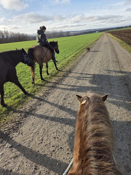 Verkaufe Classic Pony Wallach, 6 Jahre, 1.20m - freizeitgeritten, unerschrocken und charakterstark Zum Verkauf steht Joka, bei uns seit 2021 und im Herdenverband aufgewachsen, absolut sozial und verträglich. Er verfügt mit 1.20m über eine attraktive Größe und ist ein selbstbewusstes und willensstarkes Pony - kein reines Anfängerpony. Trotz eigenem Charakter ist er absolut gutartig, unerschrocken und 100% verkehrssicher, zeigt sich im Umgang ruhig und souverän. Joka ist freizeitmäßig im Gelände geritten, mit und ohne Sattel, von Kindern und einer leichten Erwachsenen. Er ist geimpft und regelmäßig entwurmt, die Zähne wurden 2025 komplett gemacht. Er steht im Paddock Trail und kennt Heu ad libitum, was er gut verträgt. Aufgrund einer höheren Rehe-Sensibilität wird er nicht in reine Wiesenhaltung abgegeben; stundenweiser Koppelgang ist jedoch unproblematisch. Joka wurde bislang nicht gefahren, bringt dafür aber beste Voraussetzungen mit: Er ist gelassen, lerneifrig und nervenstark. Die Ausrüstung kann auf Wunsch mitgegeben werden. Für Joka wird ein passender, ponygerechter Platz gesucht. Platz vor Preis! Für ein Probereiten wird eine Gebühr von 30,- Euro erhoben, die beim Kauf verrechnet wird. Bei Interesse freue ich mich über eine aussagekräftige Anfrage mit kurzer Vorstellung. Privatverkauf ohne Sachmängelhaftung. Garantie oder Gewährleistung wird nicht übernommen.