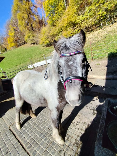 Zum Verkauf steht eine liebe, menschenbezogene und ruhige 3-jährige Ponystute mit einem Stockmaß von 115 cm (wächst aber noch). Sie hat bereits erste Anfänge in der Reitpädagogik gemacht und begleitet uns zuverlässig und brav bei Spaziergängen. Dabei zeigt sie sich stets aufmerksam, kooperativ und lernwillig. Erstes Reitergewicht kennt sie bereits und nimmt neue Aufgaben ruhig an. Die Stute kennt den Straßenverkehr und ist nicht schreckhaft. Zudem beherrscht sie verschiedene Zirkuslektionen wie Kompliment, Lachen, Shake und „Dreh dich“, was ihre Intelligenz und Freude an der Zusammenarbeit mit dem Menschen deutlich zeigt. Sie möchte arbeiten und gefallen. In der Herde ist sie eher ranghoch. Sie ist gechipt, geimpft und besitzt einen Equidenpass. Aufgrund ihres jungen Alters ist sie aktuell noch kein reines Kinderpony und benötigt eine klare, liebevolle und konsequente Führung.