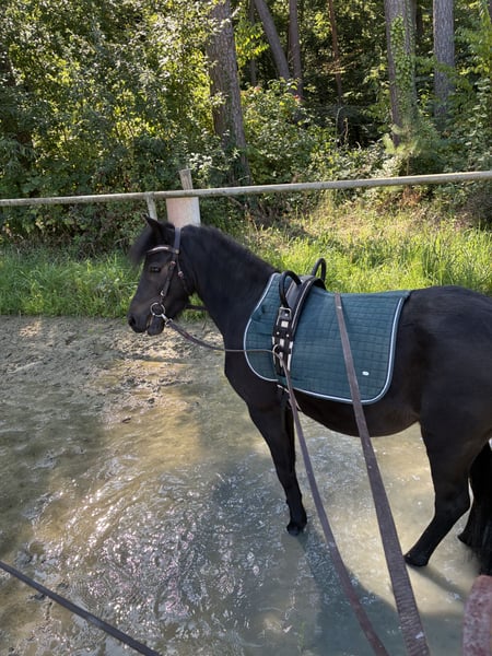 Sissi (Kleine Wolke von Bludschen) 3 Jahre alte Stute. Stockmaß ist aktuell 106cm und Gewicht liegt ~ 150kg. Mit vollen Papieren. Sissi ist eine super treue und intelligente Pony Stute. Sie ist Kinder, Hunde und andere Pferde gewohnt. Sie ist voll geimpft, entwurmt und Schmiedefrom. Sie hatte von Anfang an am rechten Knie lange Bänder, wohl vom Wachstum, sodass ihre Kniescheibe öfters raus gesprungen ist. Physio und Tierarzt meinten dies auch. Das ist seit einem halben Jahr nicht mehr passiert und vermutlich verwachsen. Sie hat 3 tolle Grundgangarten und Freiarbeit macht ihr viel Spaß. Meine Kinder 3 und 5 können gut auf ihr reiten. Longieren macht Sie auch sehr gut. Ein paar Tricks kann Sie auch und hat Spaß daran. Sissi ist super geeignet als Kutschenpony. Eingefahren ist Sie noch nicht. Vom Boden ist/ wurde Sie schon etwas an Langzügel gewohnt. Sie ist Boxenhaltung gewohnt. Steht aber jeden Tag mit anderen Pferden/Ponys draußen. Ich gebe Sie ab, da ich ihr zeitlich nicht mehr gerecht werde. Es ist kein Not Verkauf. Sie soll ein Traum Endplatz bekommen.