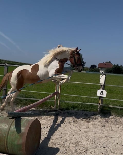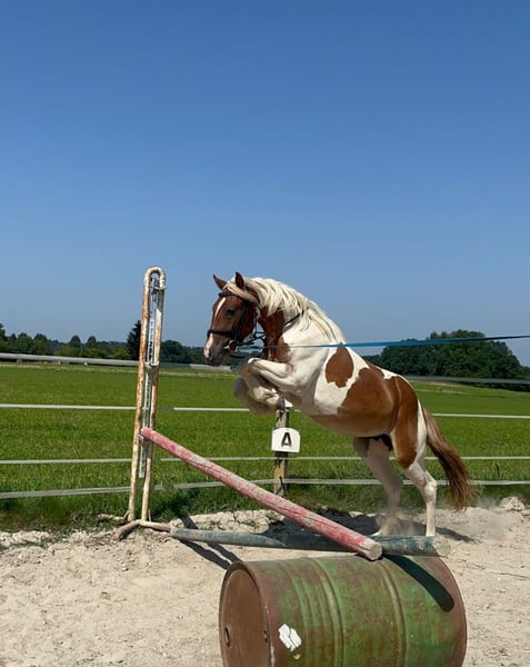 This beautiful mare with a friendly character offers a wide range of possibilities for various disciplines in the future. This young lady can jump 4 GG and can take care of any child due to her character. She is familiar with trail riding and is not spooky. Farrier and transport are not a problem. She is very uncomplicated in the herd. For further questions, feel free to get in touch.