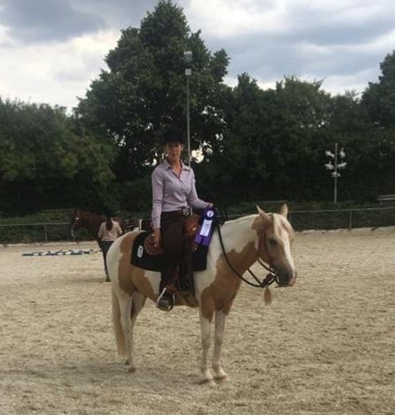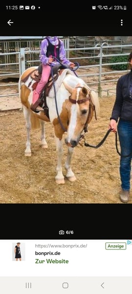 Ich verkaufe, wenn alles passt, meinen 13-jährigen Quarter Horse x Lewitzer Pony – Wallach, Stckm. 1,40 m. Er wurde regelmäßig entwurmt, geimpft, dem Ostheopathen/Physio vorgestellt, die Zähne gemacht und natürlich wurden regelmäßig die Hufe bearbeitet. Er läuft barhuf und war noch nie beschlagen. Er lebt in einer reinen Wallachherde im Offenstall mit 24/7 Heu, es wäre schön, wenn das so bleiben könnte. Er hat eine solide Westernausbildung, liebt Stangenarbeit, Bodenarbeit und ist sehr gut am Boden nach Natural Horsemanship gearbeitet. Ich habe mit ihm verschiedene Reitabzeichen absolviert, an Turnieren teilgenommen und auch Kinder haben in der Führzügelklasse am Turnier oder bei Abzeichen-Kursen (im Schritt und Trab) teilgenommen. Er braucht im Training viel Abwechslung und vor allem viel Auslauf. Ich verkaufe ihn aus persönlichen und vor allem familiären Gründen. Er hat den absoluten Bestplatz verdient, an dem er geliebt und betüddelt und regelmäßig bewegt wird, denn er ist sehr menschenbezogen. Er ist charakterstark und sensibel zugleich und deshalb kein Anfängerpferd und auch kein reines Kinderpony. Er braucht eine konsequente aber liebevolle Person. Er ist eher ein Ein-Mann/Frau- Pferd. Er geht allein oder in der Gruppe ins Gelände. Allein braucht er einen Reiter, der ihm Sicherheit gibt. Vegas hat leichtes Equines Asthma, bzw. eine Staubempfindlichkeit. Die Staubempfindlichkeit äußert sich durch Husten/Anstoßen beim Antraben. Mit täglichem Koppelgang, regelmäßiger Bewegung (3-4x Woche) und 2-3 x / Woche Kochsalz-Inhalation ist er allerdings symptomfrei. Vegas fährt ohne Probleme Hänger und fährt auch allein auf Kurs oder zum Turnier. Es ist absolut kein Notverkauf!! Keine Händler oder Schulbetriebe. Es gibt einiges an Zubehör, dieses kann gegen Aufpreis mit erworben werden. Ich wünsche mir jemanden, der ihn nicht nur wegen seiner Farbe kauft, sondern sich wirklich für seine Bedürfnisse interessiert und Freude daran hat sich mit ihm zu beschäftigen. Standort 86** Absolut Platz vor Preis!!! € 3.800,-