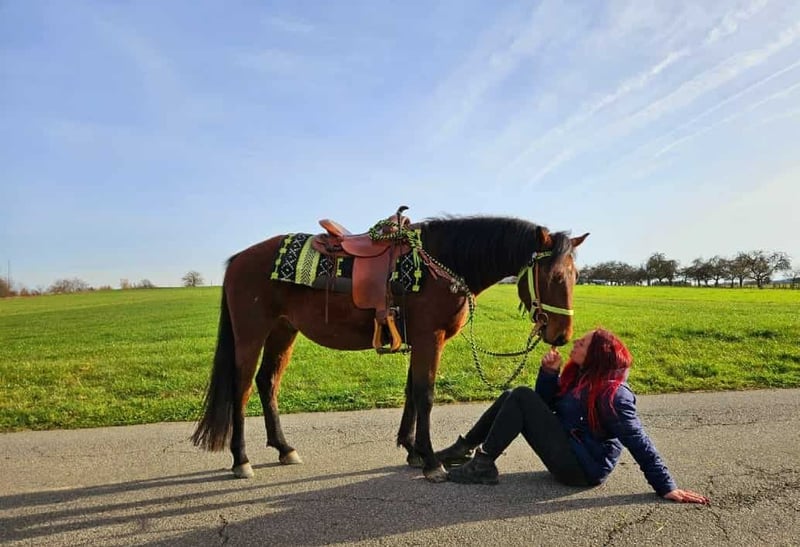 Quarter-Mix Gelding "Shorty" – young, friendly, and full of potential Details: • Name: Shorty • Breed: Quarter-Mix • Gender: Gelding • Age: 3.5 years • Height: approx. 14.3 hh • Training level: Saddled and lunged • Price: €5,800 For sale is this charming Quarter-Mix gelding, "Shorty," a young, talented horse with an excellent character and an open, people-oriented nature. 🐴 Shorty is: – very friendly and affectionate in handling – well-behaved, curious, and eager to learn – calm and composed – familiar with children, farm machinery, and rural life – cooperative, motivated, and focused during lunging and groundwork – remains cool and attentive in new situations – looking for a person who enjoys further developing him and growing together With his balanced, trusting nature and clear mind, Shorty has excellent prospects of becoming a reliable leisure partner—whether for Western riding, general riding, or groundwork. 🐎 Perfect for: Riders with patience and sensitivity who enjoy training a young horse and building a true partnership. Our horses: – regularly dewormed – attended to by farrier and osteopath 🛍 Farm shop: Western saddles, bridles, accessories 🚛 Transport & equipment organized affordably upon request ✅ Our services: – 3-month exchange guarantee – Trial ride: €35; each additional horse €25 (credited on purchase the same day) – €100 immediate discount for pickup/transport on the same day – Personal and honest advice 📞 Please inquire only by phone: 0171 – 4001968 🕗 Available daily: 8 a.m. – 8 p.m. ⚠️ No emails or WhatsApp messages ⚠️ All information provided without guarantee