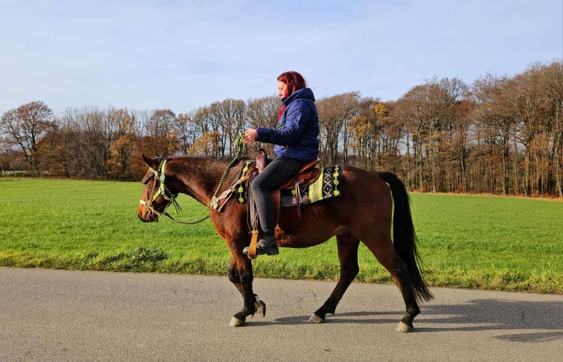Quarter-Mix-Wallach „Shorty“ – jung, menschenbezogen & mit viel Potenzial Eckdaten: • Name: Shorty • Rasse: Quarter-Mix • Geschlecht: Wallach • Alter: 4 Jahre • Stockmaß: ca. 1,46 m • Ausbildungsstand: angeritten • Preis: 5800,- Zum Verkauf steht dieser charmanter Quarter-Mix-Wallach „Shorty“ ein junger, talentierter Wallach mit bestem Charakter und einem offenen, menschenbezogenen Wesen. 🐴 Shorty ist: – super menschenbezogen und freundlich im Umgang – brav, neugierig und sehr lernfreudig – ruhig und gelassen – kennt Kinder, Landmaschinen und das Hofleben – beim Anreiten kooperativ, motiviert und konzentriert bei der Sache – bleibt auch in neuen Situationen cool und aufmerksam – sucht einen Menschen, der Freude daran hat, ihn weiter zu fördern und gemeinsam mit ihm zu wachsen Mit seiner ausgeglichenen, vertrauensvollen Art und seinem klaren Kopf bringt Shorty beste Voraussetzungen mit, um sich zu einem verlässlichen Freizeitpartner zu entwickeln – ob für Western-, Freizeit- oder Bodenarbeit. 🐎 Perfekt für: Reiter mit Gefühl und Geduld, die Spaß daran haben, ein junges Pferd weiter auszubilden und eine echte Partnerschaft aufzubauen. Unsere Pferde: – regelmäßig entwurmt – vom Schmied & Osteopathen betreut 🛍 Hofladen: Westernsättel, Trensen, Zubehör 🚛 Transport & Zubehör auf Wunsch günstig organisiert ✅ Unser Service: – 3 Monate Umtauschrecht – Proberitt: 35 €, jedes weitere Pferd 25 € (beim Kauf am selben Tag angerechnet) – 100 € Sofort-Rabatt bei Abholung/Transport am selben Tag – Persönliche & ehrliche Beratung 📞 Anfragen bitte nur telefonisch: 0171 – 4001968 🕗 Täglich erreichbar: 8–20 Uhr ⚠️ Keine E-Mail oder WhatsApp ⚠️ Alle Angaben ohne Gewähr