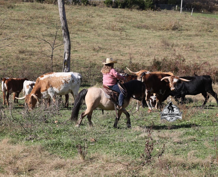 𝐀𝐝𝐚𝐦'𝐬 𝐇𝐨𝐫𝐬𝐞 & 𝐌𝐮𝐥𝐞 𝐂𝐨𝐦𝐩𝐚𝐧𝐲'𝐬 ✷𝑬𝒗𝒆𝒓𝒚 𝑴𝒊𝒍𝒆 𝑨 𝑴𝒆𝒎𝒐𝒓𝒚✷ 𝐄𝐗𝐂𝐋𝐔𝐒𝐈𝐕𝐄 𝐒𝐀𝐋𝐄 Happening now thru MONDAY | FEBRUARY 2nd - Available EXCLUSIVELY on HorseBid's website! For more details and to register visit: www.Horsebid.com CONSIGNOR CONTACT: Adams Horse and Mule Company 606-308-2461 LOCATION: Mt. Vernon, KY BREED: Quarter Pony REGISTERED: No COLOR: Buckskin HEIGHT: 11.2 AGE: 5 GENDER: Gelding One of the bittersweet things about having children is seeing them grow up before your eyes and as I have come to find out they grow up too quickly! From first steps to running wild, from first ride to first pony and now, as much as it breaks dad’s heart, we are at that crossroads with Lynnlee of going from first pony (Keychain) to first horse. Keychain has been Lynnlee’s first pony that she rode all on her own, her “Big Girl” pony. The one that we never worried about when she headed out alone, the one that she just went and caught on her own, spent hours brushing, braiding, putting mane and tail products in his mane (they worked as you can see). Keychain has been her real life Barbie pony that she has played with virtually every day after school and all summer long. We could never thank this pony enough for all that he has done for building Lynnlee’s confidence as a rider, Keychain is a once in a lifetime pony, a true unicorn… Keychain is a 11.2h, stout built, 5 year old, quarter pony and he is that amazing buckskin color! He is every little boy’s or little girl’s dream come to life! Keychain has been Lynnlee’s whole world for the last two years and now it’s time to move him along to another family and let him do his job of teaching some other kids how to ride while setting them on the path of many years of success in the saddle. Keychain has the experience that is needed and he is the perfect size to carry any size kid. (For reference) Lynnlee is 8 years old and 4 foot 9 inches tall. Keychain is responsible for millions of smiles, thousands of giggles, and countless miles and hours of fun with his best pal Lynnlee… all while doing it flawlessly, completely safe and as close to perfection as a horse can get. Even early on before Keychain gave Lynnlee the confidence that she has now, he would tolerate her mistakes with the reins, he would never take advantage of her and was very patient. In no way, shape or form has or will Keychain ever be head strong or spoiled acting, he is ALWAYS super agreeable and easy going. Confidence comes easy with him as he is one hand broke, he neckreins around and goes anywhere that you point him, he walks quietly but moves out when asked. Keychain has the absolute best lope of any pony that I have ever saw, it’s like he just floats on air without touching the ground, so soft, so smooth, he takes the correct leads and will lope out of his tracks from a stand still. He just floats along slow and easy while on a complete loose/draped rein or with the reins dropped on the saddle horn. Keychain has been used at a couple different rodeos for pony rides and in one night we had over 100 kids of all ages ride him. He was a perfect gentleman and super patient with some of the special needs kids. He has been ridden through town, is traffic safe, ridden around cows and down the trails. He is a trail riding machine and will take the little riders safely anywhere that the adults can go… creeks, ditches, crosses logs, picks his way through deadfall or rocky paths… he is very sure footed and is not in a hurry! Keychain will ride out alone, leave the barn behind with no issues, will ride in the front of a group or way back behind everyone without a fuss. Keychain is the same horse whether ridden daily or if he is left in the stall or pasture for a few months during the winter. Keychain is very friendly and loves to be groomed, whether that is standing patiently for an hour so Lynnlee can braid every hair that he has or getting soaked with a hose and scrubbed with a half of a bottle of shampoo… Keychain is the perfect kid’s horse, with his patients, confidence, rideability… do your little one a favor and make sure that Keychain’s next home is with them! For more info call 606-308-2461.
