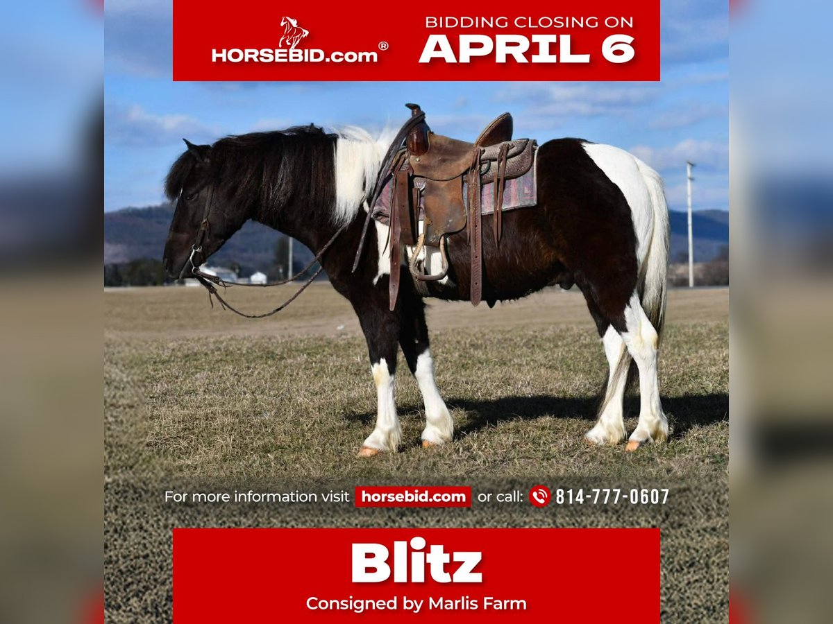 🌟𝑨𝒑𝒓𝒊𝒍 𝐀𝐋𝐋 𝐒𝐓𝐀𝐑 𝐋𝐈𝐍𝐄𝐔𝐏🌟 Happening now thru MONDAY | APRIL 6th - Available EXCLUSIVELY on HorseBid's website! For more details and to register visit: www.Horsebid.com CONSIGNOR CONTACT: Marlis Farm 814-777-0607 LOCATION: Rebersburg, PA BREED: Quarter pony REGISTERED: No COLOR: Black and white HEIGHT: 13 AGE: 5 GENDER: Gelding Blitz – Safe, Versatile Family Pony Gelding Blitz is a 5-year-old black and white pony gelding standing a handy 13 hands tall. This eye-catching little gelding is well broke to both ride and drive, making him a fantastic all-around addition to any program. Under saddle, Blitz offers a smooth and comfortable walk, trot, and canter. He has been trail ridden and handles new environments with a quiet, willing attitude. Blitz is traffic safe, level-headed, and dependable, making him a great choice for kids and families alike. On the ground, he is just as enjoyable—he stands quietly to be tacked, groomed, and mounted, and has the kind of gentle, patient demeanor everyone appreciates in a pony. He is sound, sane, and ready to step right into his next home. Blitz is the kind of pony that’s hard to find—safe, versatile, and kind-hearted. For more information or to come meet Blitz, call Mark at 814-777-0607 (call only). We can help arrange shipping anywhere.
