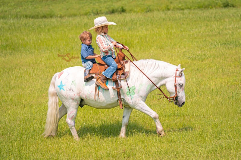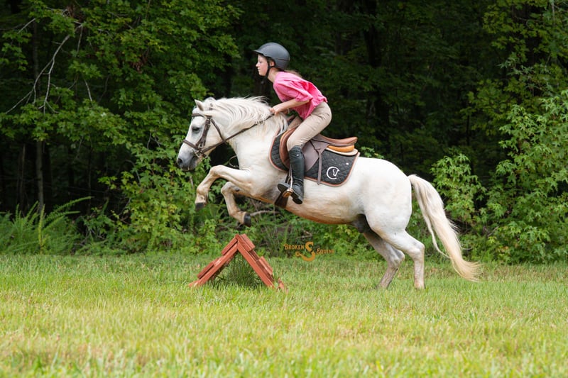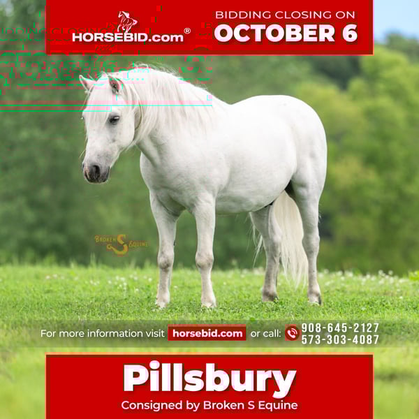 🍂 𝓐𝓾𝓽𝓾𝓶𝓷 𝑨𝑳𝑳 𝑺𝑻𝑨𝑹 𝑳𝑰𝑵𝑬𝑼𝑷 🍂 Happening now thru MONDAY | OCTOBER 6th - Available EXCLUSIVELY on HorseBid's website! For more details and to register visit: www.Horsebid.com CONSIGNOR CONTACT: Broken S Equine Kieran 908-645-2127 or Beau 573-303-4087 LOCATION: Bogard, MO BREED: Welsh x Quarter Pony REGISTERED: No COLOR: Grey HEIGHT: 11.3 AGE: 7 GENDER: Gelding Pillsbury is a 7 year old Welsh x Quarter Pony gelding standing a stout and sturdy 11.3 hands high. This pony is the highlight of the year, and not a day has gone by where we didn’t debate on hanging onto him for the kids to keep. He is a chunky, snuggly, smart little guy that is as reliable as the day is long. He hasn’t blinked an eye, or put a foot wrong with everything we have done with him. The kids rode him double, bareback, into town, and driven him through the drive through for lunch! He jumps like he’s heading to pony finals, and is a total superstar on the cross country course. He’s pushed cows, ponied the minis on trail rides with the smallest kids on board, gone to pony camp, been dressed up as a unicorn, had guns shot off his back, and created so many unforgettable memories for our kids and their friends. He makes you wish you were a kid again so that you could hop on and join in on the fun. Even from the sidelines, Pillsbury will make your heart full seeing just how happy he makes every one of his little riders. Where hasn’t this pony gone? From going on rides to the park, standing patiently at the playground while the kids play, to riding to Sonic for a slushee afterwards, Pillsbury is truly up for any adventure. He was piloted by an almost 4 and 2 year old, straight into Tractor Supply and rode around to buy a bag of pony treats. If riding him around town isn’t your style, he’s great on the ranch too. Born and raised out west, Pillsbury is no stranger to making himself useful. He will trot along with the big horses to check fence, and stand patiently with the kids on his back while the adults doctor calves and work. If you come by our farm in the evenings you’ll probably see him bareback in a halter in the pasture with a kid or two on his back riding around doing whatever is asked of him. He has been a huge confidence builder for the girls who were just starting out over jumps. From hunt country, to the cross country field, or just cross rails in the arena, he will help build confidence and your kids riding skills with every fence! Pillsbury is a little trail master. He crosses water, will climb up banks, jump ditches, and has even seen the cross country course! He’s an asset to a parent that needs a babysitter they can trust to keep the kids safe on the ranch, and cleans up nice to look like a little show pony when he’s in English tack! He has a nice stop, easy steering, and a super duper cute trot! Pop him over the jumps on the cross country field, or on hunter paces. He’s even been around hounds, so with his brains and quiet mind - he would make a fantastic hunt pony too! In the barn, you’ll most likely see Pillsbury being groomed, braided, and maybe even being finger painted. He’s no stranger to getting a unicorn horn tied to his bridle and playing princess as well. He stands there all day like a saint, and soaks in all the attention. Pillsbury is a good boy for all the normal barn tasks, and is an easy keeper. He lives out in a mixed herd, gets along well with others, and has no vices or maintenance. Ride him 3 times a day or once a month and he’ll be the same steady pony as always. ⚫️Pillsbury is an easy keeper that requires no maintenance. We have a recent, clean vet check on file. ⚫️Our program aims to train and produce top quality horses and ponies for all disciplines and experience levels. Check out our website for testimonials! ⚫️We are located in Bogard, MO. We can help you arrange shipping anywhere! ⚫️For more information about Pillsbury, or any of our other horses call or text us. Kieran 908-645-2127 Beau 573-303-4087