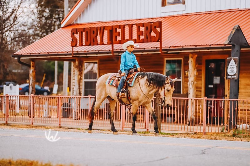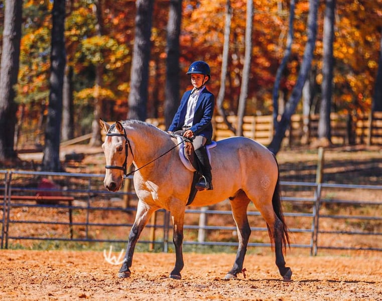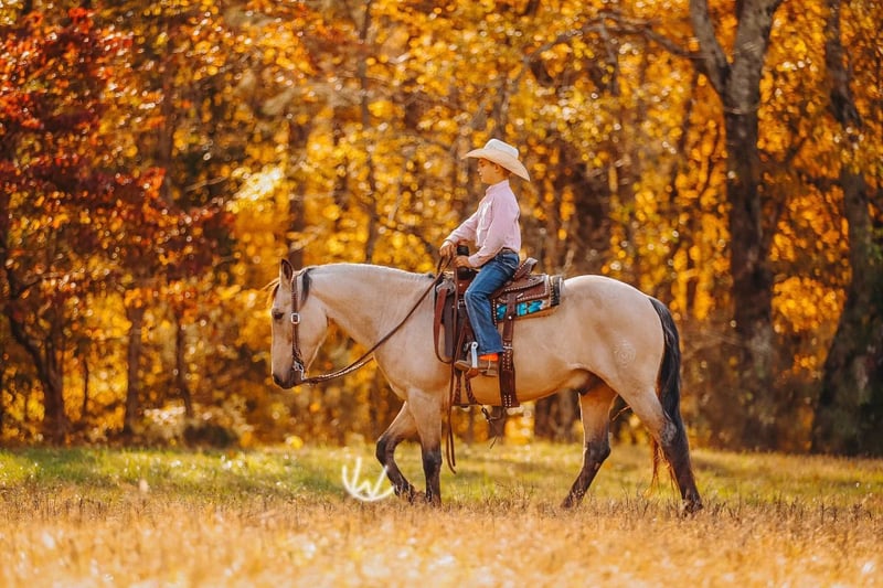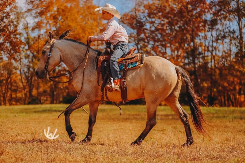 🎁 𝐈𝐍 𝐓𝐈𝐌𝐄 𝐅𝐎𝐑 𝑪𝒉𝒓𝒊𝒔𝒕𝒎𝒂𝒔 🎁 Happening now thru TUESDAY | DECEMBER 9th - Available EXCLUSIVELY on Ponybid's website! For more details and to register visit: www.Ponybid.com CONSIGNOR CONTACT: Rockin W Ponies • Double R Ranch Rachel Vick LOCATION: Lyles TN BREED: Quarter Pony REGISTERED: No COLOR: Buckskin HEIGHT: 52” AGE: 7 GENDER: Gelding Meet Gus! The most incredible buckskin gelding who checks every dream pony box from the moment you see him. At 7 years old and standing 52”, he is the perfect combination of quiet kindness mixed with talent and ability. He is extremely well-broke and rides just like a big horse with real handle, real training, and real feel. He has everything it takes to be the PERFECT all around pony for your child, whether you need a babysitter or a step up pony for your kiddos to excel with and move to the next level, no matter the discipline! He is also big enough to carry a smaller adult, no problem. Gus is as kind and kid-loving as they come. Easy to catch, gentle for little hands to groom, stands quietly for the farrier and vet, loves attention and an occasional snack! He is polite, patient, steady, and the same every ride. With his old soul, and his gentle confidence building nature- it’s easy to see why parents have trusted Gus to help teach their beginners how to ride! Under saddle, Gus is the kind of pony parents dream of finding. You can saddle him, hand the reins to your child, and feel comfortable. He is steady, quiet, dependable, and adjusts perfectly to his rider. He will poke along for timid kids, ride alone or in a group, cross water, step over logs, and stay level headed. When a more advanced kid climbs on, he becomes more responsive, athletic, and ready to work which makes him a rare pony who will grow with your children instead of being outgrown! Gus is extremely well broke and rides with the training of a seasoned ranch horse. He spins, neck reins, moves off your leg, and rides very correct and honest. He has been a turn back pony for cutting and works confidently in sorting and team penning as well. Gus is also an excellent roping pony and has done heeling and steer stopping. He enjoys going after a cow, and will pin his little ears and put his rider right where they need to be. He runs a neat and clean barrel pattern and will settle right back down to any pace if you need him to trot or slow lope the pattern. He is also a wonderful little English pony who jumps willingly, stays balanced, and is easy to guide and ride. He’s so responsive, and watching him trot around neat and proper, will make you smile big. He is truly THE coolest pony and you won’t find any so versatile and genuinely talented at everything! Our buddy Gus is the kind of pony families keep for a lifetime. If Wade didn’t already have a pony this size- Gus would not be for sale. Set your kids up for success with a beautiful buckskin unicorn!! He sells 100 percent sound with a recent clean PPE performed by Dr. John Laster DVM of Todd County Animal Clinic which will be included at the end of the pictures. Located in Lyles TN. Nationwide shipping available- we are happy to help arrange transport. With the recent outbreak of EHV-1, Gus is more than welcome to remain with us until it’s deemed safer to travel! We are also happy to hold Gus here for Santa until Christmas, free of charge! For more information or to schedule a visit, contact Rachel Vick at 931 623 1706.