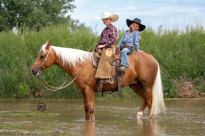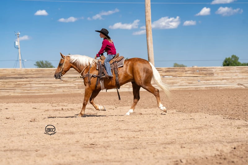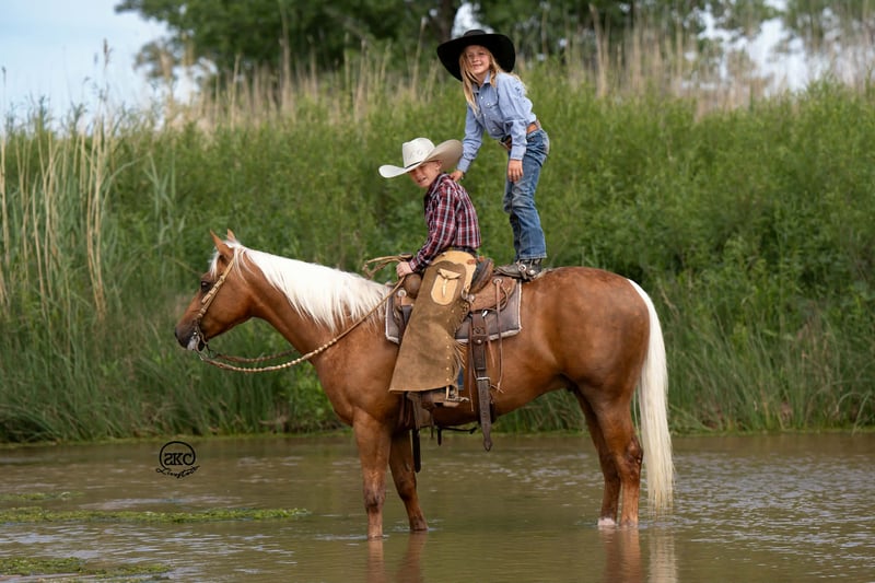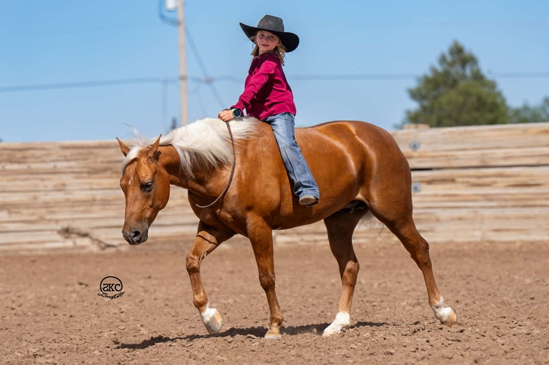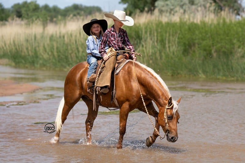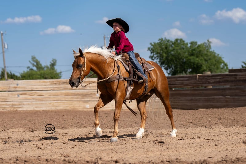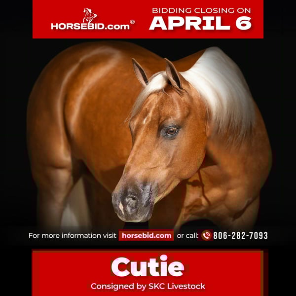 🌟𝑨𝒑𝒓𝒊𝒍 𝐀𝐋𝐋 𝐒𝐓𝐀𝐑 𝐋𝐈𝐍𝐄𝐔𝐏🌟 Happening now thru MONDAY | APRIL 6th - Available EXCLUSIVELY on HorseBid's website! For more details and to register visit: www.Horsebid.com CONSIGNOR CONTACT: SKC Pony Collection 806-282-7093 LOCATION: Canyon, TX BREED: Quarter Pony REGISTERED: Yes REGISTERED NAME: Memphis COLOR: Palomino HEIGHT: 14 AGE: 8 GENDER: Gelding Meet Cutie! Like the Orange, and when you meet him in person you will completely understand! He is cute as can be, perfect confirmation wrapped in a striking dark gold coat, a snow white mane and tail, and big kind doe eyes! He is registered in the American quarter Pony Association! Cutie has been our children’s go to pony. They have quite literally done everything under the sun on him. He goes English or western. He has been to all the play days and horse shows, weekend camping trips, he’s been breakawayed on, we have trail rode him, drug calves, shipped, doctored cattle, and even shot the gun off of him. Cutie is the jack of all trades and we absolutely adore him for it! Cutie started out in a reining program and he has all the fun buttons that are so hard to find in one his size. He has a big fun stop, cute turn arounds, and lopes around like your favorite show horse. Our Kids have taken Cutie to every horse show, and play day near us. They have also used him at home to rope on. Our oldest Kyler (11) has tracked slow calves around on him and our middle child Saylor (9) ropes the sled on him. Then you can turn right around and throw the littlest Townes (5) on him! Cutie also has impeccable ground manners. He will stand for hours for our little girl to brush him, bathe him, saddle him, or just simply play with him for the afternoon. He has the patience of a saint! He loads, hauls, and backs off the trailer with ease. Our kids have also taken Cutie on miles and miles of trail rides. Crossing rivers, down timber, right by busy traffic, and through all kinds of terrain. He is sure footed and steady as can be. Cutie is also trained to Curbside mount making it extremely easy for the little kids to mount even if they’re bareback in a pasture somewhere! Not only will cutie curbside and ride bareback but he will even go bridle less as well. He is so broke and so willing that there just not a thing you can’t do on him! He is truly the little horse that will teach your children how to ride a broke horse, and give them a world of confidence. Please call Cheyenne at 806-282-7093 or Levi 785-231-2353 if you have any questions.