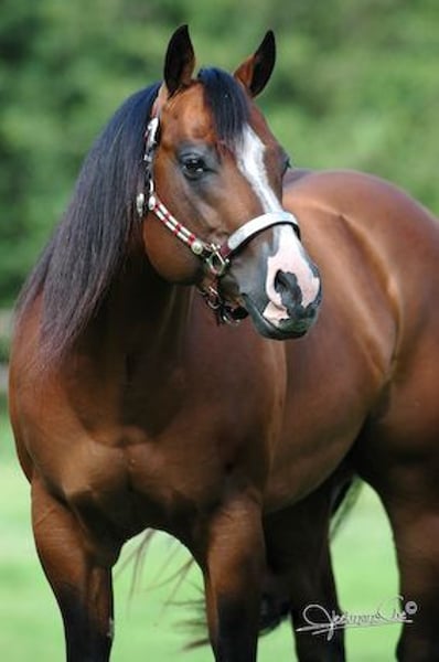 Mehr & bessere Fotos/Videos folgen noch... Ozzie wurde von mir selbst gezüchtet, aus meiner Polomerrie (Criollo Vollblut-Mix, kein Zuchtbuch) und dem Quarterhengst Don Quixote Escapes (Quarter Horse # 3936276, Eigentum der Eifel Gold Ranch, Deckschein und weitere Informationen über den Vater sind vorhanden, wie Fotos und Leistungsnachweis). Er ist nun seit einigen Jahren unter dem Sattel (ich habe Anfang 2022 mit dem Anreiten begonnen) und ist ein liebes Allround-Reit- und Kuschelpferd, mit dem man ein Leben lang Freude haben kann. Leider komme ich aufgrund von Zeit- und Interessensmangel nicht dazu, ihm das zu geben, was er braucht, und das Potenzial, das vielleicht in ihm steckt, auszuschöpfen. Er ist nicht wirklich dressurmäßig hervorragend ausgebildet, aber die Grundlagen sind vorhanden. Er wurde gebisslos geritten, wird jetzt aber meistens mit Gebiss geritten, kennt also beides. Er hat viele verschiedene Umgebungen während der zahlreichen Ausritte, die wir gemacht haben, gesehen (Strand, Wald, Dorf, Dünen, Wasser, Trekking usw.). Er ist verkehrssicher, aber nicht bombensicher, jedoch ruhig im Kopf. Cowboy-Trail-Training hat er mitgemacht und ein wenig Basis-Western, das ist schon eine Weile her, kann aber leicht wieder aufgegriffen werden. Er ist (noch) nicht für unerfahrene oder unsichere Reiter geeignet, er kann manchmal ein (kleines!) Buckeln machen, um Spannung abzubauen, wenn alles zu schnell geht, oder mit seinen Hinterbeinen ausschlagen, wenn man zu viel Druck ausübt, während er etwas Spannendes findet. Er kann manchmal wegspringen, wenn er sich wirklich erschrickt, gerät jedoch nicht schnell in Panik und läuft auf keinen Fall davon! Wenn der Reiter das Gleichgewicht verliert, wenn er sich erschrickt, macht er daraus keinen Vorteil oder erschrickt nicht zusätzlich, sondern lässt dir gerade dein Gleichgewicht wiederfinden. Er steht bei mir 24/7 in der Gruppe mit Weide und großem Unterstand und sucht einen ähnlichen guten Platz. Er ist gut beim Schmied, auf dem Trailer und im Umgang, kerngesund, jedes Jahr beim Zahnarzt gewesen (symmetrisch ausgerichtet) und regelmäßig beschlagen.