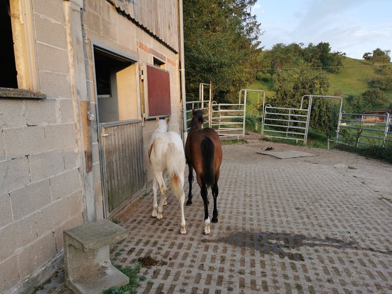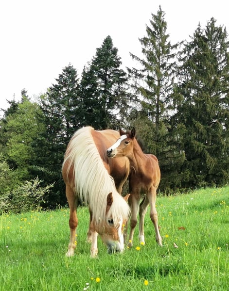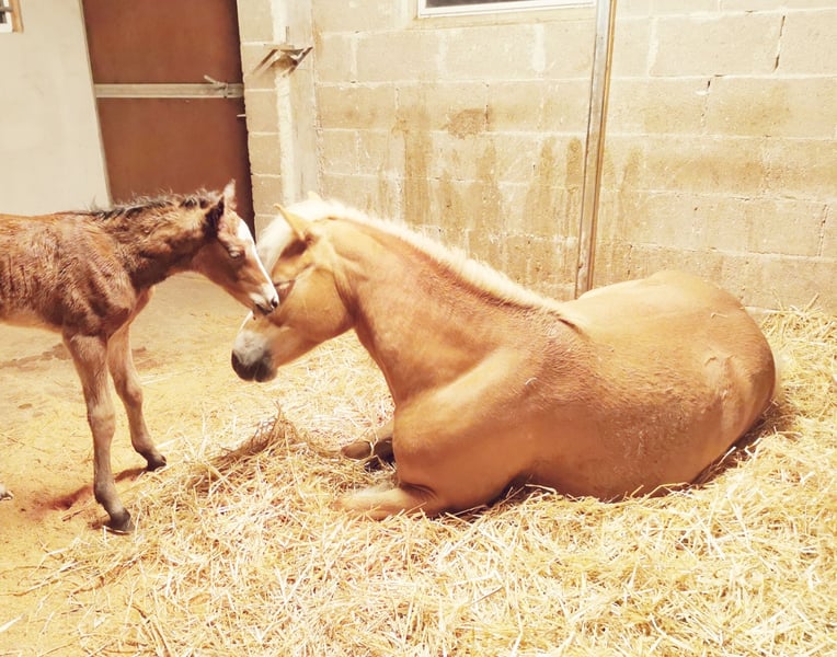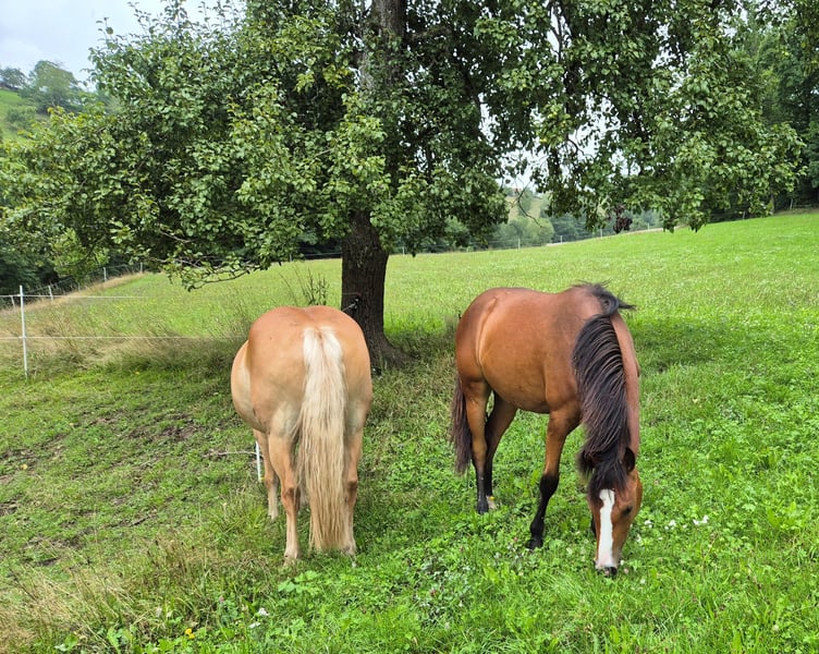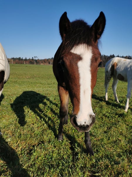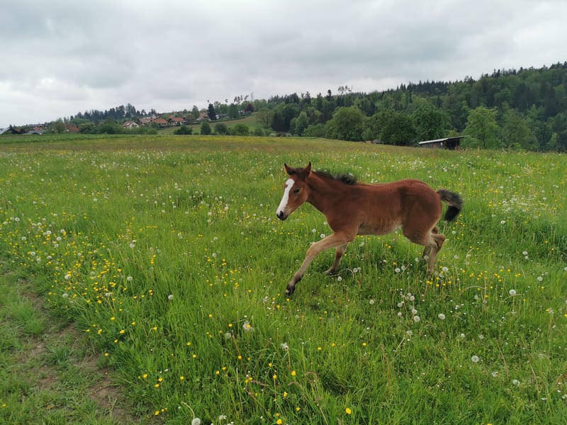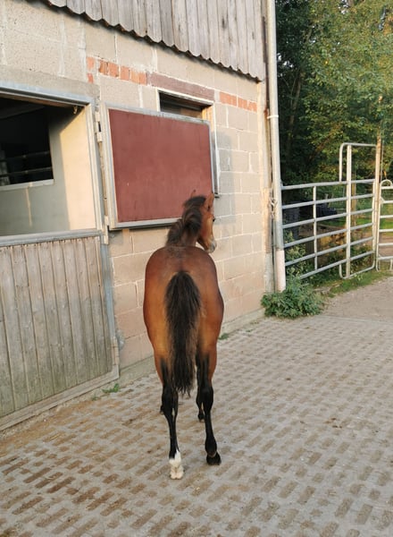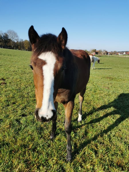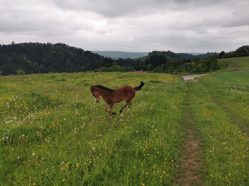 "Finest Lilo", auch Liselotte genannt, kam am 28. März als Erste unsere 3 Stutfohlen in 2024 zur Welt. Sie begeistert uns von erste Sekunde an durch ihre ausdrucksstarke Erscheinung. Sie ist neugierig aber nicht aufdringlich und punktet durch den Quarter Pony-typisch, vitalen und athletischen Körperbau. Ihre vier älteren Vollgeschwister Laslo, Limo, Lina und Lino aus derselben Anpaarung lassen bei ihren neuen Besitzerinnen keine Wünsche offen und sind sehr leicht auszubilden. Lipari's erste 3 Fohlen sind Palominos, Lino ist ein Fuchs und Liselotte nun eine wunderschöne Braune! Daher haben wir unsere Haflingerstute Lipari wieder mit dem europaweit bekannten und sehr erfolgreichen Quarter-Horse Hengst "EH One Of Lena's Finest" vom Eliesenhof verpaart. Lilo's Elterntiere sind auf 5- und 7-Panel-Test N/N getestet. Liselotte's Mutter, "Lipari" ist aus einer ganz besonderen Haflingerlinie gezogen mit 0% Araber-Anteil, welche sogar von den Südtirolern gefragt ist. Also noch aus der älteren schwereren Linie und trotzdem hat sie eine sehr stimmige Erscheinung mit feinem Kopf und strotzt vor Vitalität. Die Sturheit, die man Haflingern gerne nachsagt, kann ich hier nicht bestätigen. Zurück zu Lilo: Sie ist beim ZSSE e.V. als Quarter-Pony eingetragen und besitzt selbstverständlich einen Equidenpass. Das geschätzte Endmaß beträgt vermutlich 1,50cm+. Liselotte hat jetzt schon ein beachtliches Stockmaß von 1,45cm. Sie zeigt ein starkes Fundament und ist somit später somit auch gut als Reitpferd für Erwachsene geeignet. Sie wurde bisher gechipt und regelmäßig entwurmt und bekam zum Jahreswechsel die Tetanus-Impfung. Pferdehänger-Fahren zusammen mit ihrer Mutter kennt sie schon. ***Wir züchten jedes Jahr 2-3 Quarter-Ponys*** Unsere Fohlen dürfen artgerecht im Herdenverbund auf 10ha Weideland und im Aktivstall unter besten Voraussetzungen und lückenlosen Überwachung nach Bioland-Bedingungen aufwachsen. Da auch unsere Kleinkinder täglich mit im Stall sind, legen wir Wert auf umgängliche, nervenstarke Pferde. Außerdem lernen unsere Fohlen auch von klein auf andere Tierarten kennen, wie z.B. bei der Mischbeweidung mit unseren Rindern und sind daher schon früh sehr souverän. Durch guten täglichen Umgang lernt unser Nachwuchs nach dem Absetzen in wenigen Tagen das Fohlen-ABC. Durch ihr großes Vertrauen zum Mensch folgen sie uns schon als junge Fohlen problemlos in den Hänger und Co. - also beste Natural Horsemanship Voraussetzungen! Bei uns besteht also die Chance ein "rohes", unverbrauchtes Pferd ohne schlechte Erfahrungen zu bekommen, welches leicht nach den ganz eigenen Bedürfnissen ausgebildet werden kann. Für Lieselotte's Zukunft wünschen wir uns zukünftig ein förderfähiges aber vor allen Dingen artgerechtes neues Zuhause! Für diese Jährlingsstute und sympathische Neubesitzer besteht die Möglichkeit, dass sie noch einige Jahre bei uns am Hof eingestellt werden kann. Preisverhandlungen sind möglich und werden vor Ort geführt. Bei Interesse an Lilo freu ich mich über einen Anruf oder eine Nachricht, gern auch per Whatsapp 0176 56798081