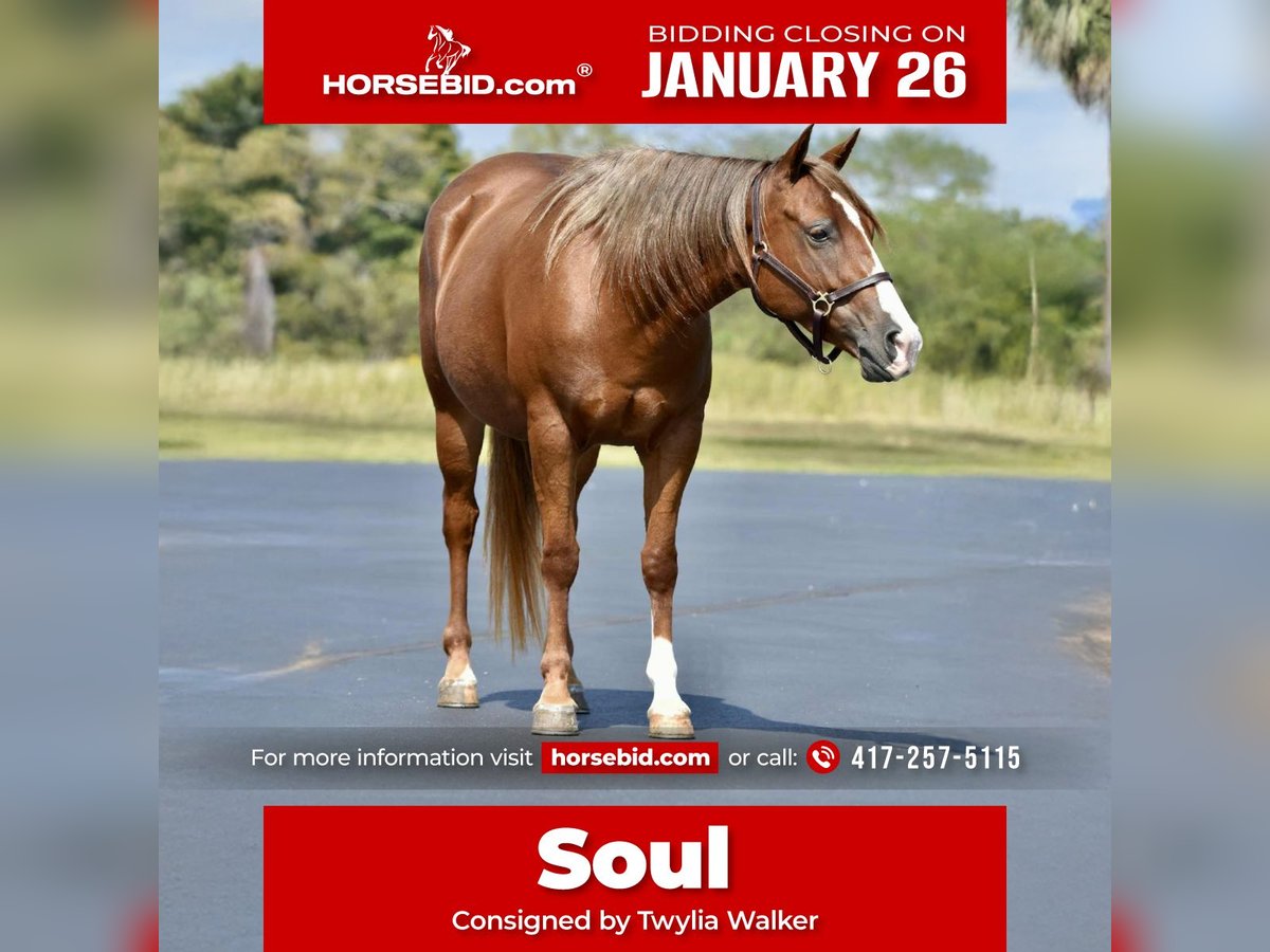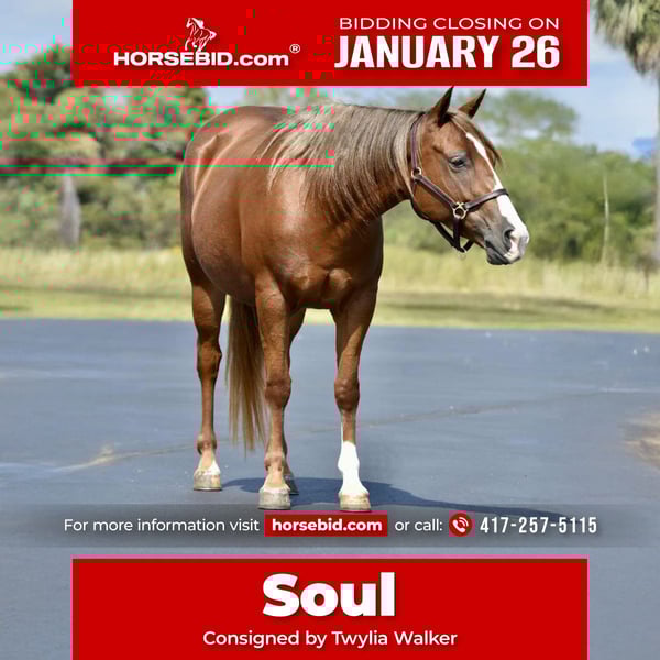 𝐉𝐀𝐍𝐔𝐀𝐑𝐘 ⭐️𝑨𝒍𝒍 𝑺𝒕𝒂𝒓 𝑳𝒊𝒏𝒆𝒖𝒑⭐️ Happening now thru MONDAY | JANUARY 26th - Available EXCLUSIVELY on HorseBid's website! For more details and to register visit: www.Horsebid.com CONSIGNOR CONTACT: Twylia Walker 417-257-5115 LOCATION: Cabool, MO BREED: Quarter Pony REGISTERED: No REGISTERED NAME: Soul COLOR: Sorrel HEIGHT: 13.2 AGE: 5 GENDER: Mare "Soul"-5-Year-Old Quarter Pony Mare. Soul is a well-built, 5-year-old quarter pony mare standing 13.2 hands tall. She is a granddaughter of Frenchmans Guy and is out of a Cantbullythisguy sire, giving her the pedigree and athleticism to go in any direction. She is also out of a proven pony mare, combining the best of pony sensibility with horse ability. This little mare is stout, solid, and sure-footed-the kind that makes an ideal step-up pony for a confident kid or small adult. She has experience gathering and pushing cattle, has done light roping, and will hold a calf without hesitation. Nothing bothers this pony-she will trail ride anywhere, crosses water, and has been used at playday events. Soul is excellent to handle: * Loads and unloads easily * Stands quietly for the farrier * Washes and bathes without fuss We raised and trained Soul ourselves, so we know her inside and out. This is the first time she has ever been offered for sale, and she has had a correct, consistent start from day one. She is a nice, athletic pony with the breeding, build, and mind to make someone a dependable partner. Ponies this size and quality are hard to find.