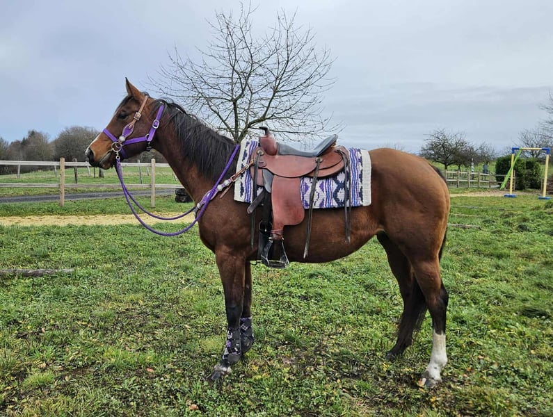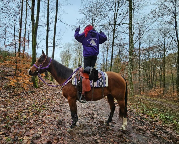 Quarter Horse mare „Simply Revolution“ – Reliable leisure partner with a heart Age: 6.5 years Height: approximately 15.2 hh Price category: €6,500 Pre-purchase exam: available ✨ Description: This 6-year-old Quarter Horse mare charms with her friendly nature and relaxed demeanor. „Simply Revolution“ is absolutely well-behaved in handling, very people-oriented, and reliable and eager to learn under saddle. She is familiar with both arena work and relaxed rides – alone or in a group. 🐎 Ideal for riders who: are looking for an uncomplicated young mare that convinces as a dependable leisure partner and is open to further training. A nice Western leisure horse that’s fun to ride! 🩺 Our horses are regularly: – dewormed – attended by the farrier – osteopathically checked 🛍 Farm shop: Western saddles, bridles, & accessories 🚛 Transport and equipment can be arranged affordably upon request Our services: ✅ 3-month exchange guarantee ✅ Trial ride: €35, each additional horse €25 (credited on the day of purchase) ✅ €100 immediate discount for pickup/transport on the same day ✅ Honest and personal advice 📞 Please inquire exclusively by phone: 0171 – 4001968 🕗 Available daily from 8 am to 8 pm ⚠️ No emails or WhatsApp messages ⚠️ All information provided without guarantee