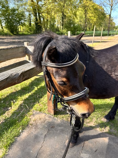 For sale is our sweet "Sunny Day." Sunny Day was born in 2011 and is a Dartmoor Pony mare with a pedigree. Her height is approximately 4 feet (120 cm). She has previously been used as a broodmare and has produced several beautiful foals. Currently, she is in transition to becoming a leisure pony and shows a strong willingness to learn. She can be somewhat wary of strangers, but once she knows someone, she handles everything well. Sunny Day is accustomed to being groomed, cuddled, and led by children, and she is always well-behaved in these situations. She is happy to give all four hooves and stands patiently for the farrier. Her training as a riding pony still needs to be further developed. So far, she is familiar with a saddle, bridle, lunging, and riding in the arena at walk and trot. She has even been out in a group on a trail ride and behaved impeccably. We will continue working on her aids and are confident she can become a wonderful children's pony. There are a few things she still needs to practice, such as lunging on the right rein and calming down from hectic movements by adults. Sometimes, these can be a bit overwhelming for her. Of course, she could also be used for breeding again. She is regularly dewormed, has been checked by the farrier, and lives in a paddock with a mixed herd, with whom she gets along well. Her teeth have been checked and are in good condition. If you think Sunny Day might be a good match for you, please feel free to contact us and get to know her. I am selling Sunny Day on behalf of the owner. She is located in Meppen-Teglingen.