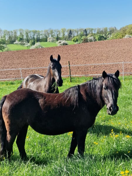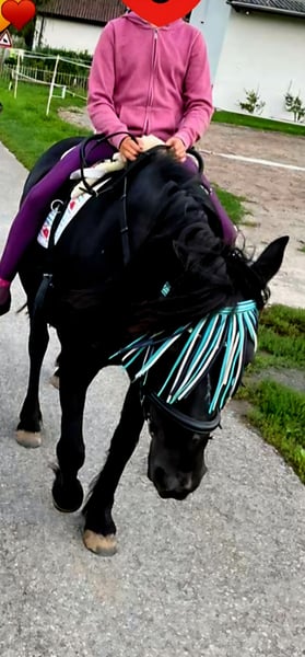 Hallo, schön dass sie sich für unser Pony interessieren. Rasse : Mix aus Dartmoor und Island Pony steht in Robusthaltung in großer gemischten Herde w/s / Offenstall - Herdenhaltung mit 24/7 Weidegang ABSOLUT herdenverträglich und eher rangniedrig. Schweren Herzens haben wir uns dazu entschieden unser Pony abzugeben. Da ich keine ( Art) -Hippolini-Reiten mehr anbiete und sie für meine eigenen ,,kleinen Kinder,, nur schwer alleine zu reiten ist, suchen wir für sie ein neues Zuhause wo man ihren Bedürfnissen gerecht wird. Sie lässt sich von meinen Kindern anstandslos putzen, gibt brav und zuverlässig Hufe. Sie ist ein absolut liebes, braves und anständiges Pony beim Verladen und beim Hufschmied. Sie wird regelmäßig geimpft, geht regelmäßig zum Zahnarzt ( zwei Zähne fehlen ihr/dadurch KEINE Beeinträchtigung beim Fressen) und hat KEINE REHE. Sie liebt Geländeausritte und macht fleißig und aufmerksam Bodenarbeit mit. Für Anfänger ist sie jedoch zum Reiten lernen, nicht geeignet. Sie benötigt einen Reiter der ihr klare Hilfen geben kann und sich klar und deutlich durchsetzen kann. Sie mag keine ständig wechselnden Reiter, ich wünsche mir für sie einen Reiter der Spaß und Freude an Bodenarbeit und Freizeitreiten, hauptsächlich ins Gelände hat. Ob sie jemals vor der Kutsche stand wissen wir nicht, bei uns wurde sie nicht gefahren. Als Handpferd für ein beispielsweise Mutter - Kind - Team auch denkbar, ebenso für für Zucht oder Beistellpony denkbar. Vielleicht sucht ja jemand genau so ein tolles Pony.... Preisverhandlungen möchte ich im Vorfeld nicht tätigen und werden ignoriert, darüber möchte ich mich gerne unterhalten, wenn ein ernsthaftes Interesse besteht und ich sehe wo sie hinkommen würde und ob die Chemie zwischen neuem Besitzer und Pferd stimmt .. (Platz vor Preis) Ganz liebe Grüße