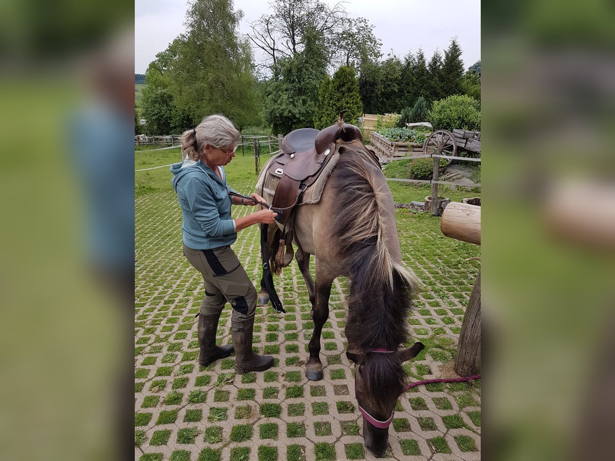 Jonny ist 2013 geboren und kam noch nicht einjährig zu uns auf den Hof. Er lebte drei Jahre frei und sehr ursprünglich. Er wurde mit vier Jahren eingeritten und ging neun Jahre im Reitbetrieb als Freizeitpferd, wo er ausschließlich im Gelände geritten wurde. Zunächst war er sehr unkompliziert und willig. Sehr dem Menschen zugewandt und neugierig. Im Laufe der Jahre entwickelte er allerdings einige „Strategien“ um sich dem Einfluss des Menschen zu entziehen . Schlau und ursprünglich vom Verhalten wie er ist, wurde es immer schwieriger mit ihm im Handling umzugehen. Zum Schluss (Ende des vorigen Jahres) weitete es sich auch auf sein Verhalten beim Reiten aus. (Obwohl er sehr fein zu reiten ist und immer mit Spaß bei der Sache war). Da es dann definitiv zu gefährlich wurde, habe ich ihn seit November 25 ganz aus dem Reitbetrieb raus genommen. Was ihm unbedingt fehlt ist eine feste Bezugsperson, die mit viel Geduld, Liebe und Freude an einer vertrauensvollen Beziehung mit ihm arbeitet. Diese Person muss ganz klar sein und alle Zeit der Welt haben, um ihn als Gefährten ohne Druck und Forderungen zu „gewinnen“. Da er einer unter 13 Pferden war, bin ich ihm leider nie gerecht geworden ( im laufenden Reitbetrieb mit ständig wechselnden Reitern und ich selber immer am Anschlag) . Und da ich selber nicht mehr die Jüngste bin, möchte ich für ihn ein neues Zuhause auf Lebenszeit suchen. Nun ist er 13 Jahre und jung genug, einen neun Anfang zu setzen. Es wird mit Sicherheit nicht einfach…..aber wird sich lohnen!