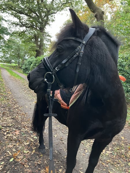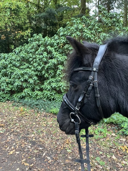 Da sich mein Leben nun doch anders entwickelt als erwartet, habe ich mich dazu entschieden, mich wieder von meinem schwarzen Power-Dülmi zu trennen. Nach einem Sommer Urlaub auf der Weide wird er seit etwa 2 Monaten wieder abgeschoben. Domino hat große Freude daran, etwas mit seinem Menschen zu machen. Zirkuslektionen, Longe und Doppellonge sind eine willkommene Abwechslung zur Platzarbeit. Er ist sehr unerschrocken und reagiert sehr gut auf Stimme, daher könnte ich ihn mir auch gut als Fahrpony vorstellen. Bei seiner vorherigen Besitzerin wurde Domino hauptsächlich im Gelände geritten. Das klappt wunderbar, allein und in der Gruppe. Aktuell muss Domino seinen Sommerbauch noch etwas abtrainieren. Auf dem Platz, in der Dressurarbeit lernt er wirklich schnell und möchte immer gefallen. Den ein oder anderen kleinen Sprung nimmt er mit Begeisterung. Als typisches Pony oder auch Wildpferd hat er seinen eigenen Kopf, daher würde ich Domino nicht als reines Kinder oder Anfängerpony abgeben. Durch seine kompakte Figur deckt er aber auch kleine Erwachsene hervorragend ab. Er ist niemals böse, treten, beißen usw sind ihm fremd, aber er vergewissert sich gern einmal ob alle „Regeln“ dauerhaft gelten;) Er läuft aktuell barfuß und ist super artig beim Schmied. Bei mir steht er in einer reinen Wallach-Herde. Das sollte auch so bleiben, da er bei Stuten leider aufspringt. Insgesamt ein super hübscher Vertreter seiner Rasse und ein toller unverbrauchter Allrounder.
