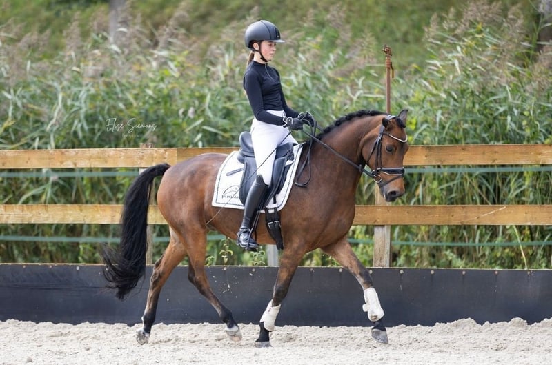 With a heavy heart, we offer our beloved pony for sale. Martie is a 13-year-old D-pony (approx. 14.4 hh) with a sensitive yet honest temperament. He loves being around other horses and ponies, and therefore enjoys being in the pasture or paddock with company. He has been lightly trained in dressage, can make a small jump, and is very suitable for forest rides or trips to the beach. Under saddle, Martie is a pleasure to ride and reliable. Due to his sensitivity, we are seeking a calm and honest rider who can approach him with care and understanding. He is easy to handle for the farrier, has always been punctual for the veterinarian, and his vaccinations are fully up to date. In short, a healthy, well-maintained pony ready for a new rider to enjoy many adventures together.