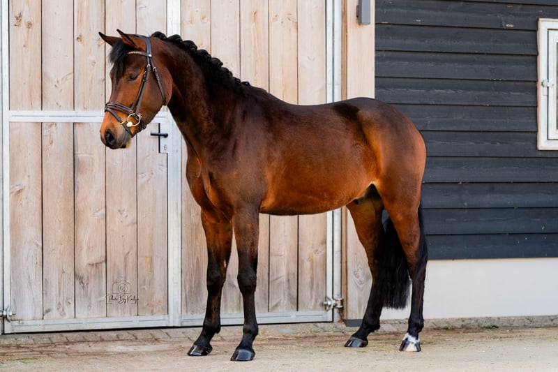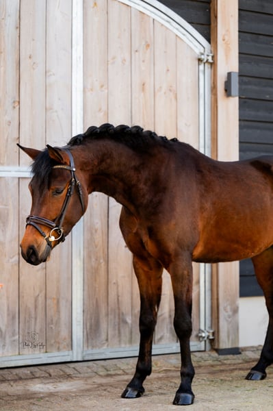 This incredibly sweet and compact New Forest pony is ready to move to his new home. Joly’s Tiago is a 4-year-old, large D-pony gelding by Riddersholm Salem X Dusty. Tiago is a very gentle, soft pony. He loves cuddling and grooming. Under saddle, he is well-behaved and sensible, having never taken a wrong step, and is eager to learn (new) things. He has been out on unfamiliar terrain and rides nicely there as well. Although Tiago is very easy and obedient under saddle, I don’t consider him suitable for beginners given his age. Tiago has been ridden by multiple young and experienced riders, all of whom have done very well with him. Tiago has also attended show jumping training; he is well-behaved but finds it quite exciting. He absolutely does not want to hit the poles, which is very good. However, he could benefit from more relaxation in this area. Therefore, our current focus is more on dressage training and development. Handling and stable manners: Tiago is a big sweetheart! He loves taking naps, and you will often see him lying down. You can sit quietly beside him to cuddle. He is also friendly towards other horses. He has no (stable) defects, has been checked by the dentist, and is always properly vaccinated and dewormed. Tiago still finds the farrier a bit intimidating, but he improves every time! He is well-behaved in the grooming area (even with water) and easily loads onto the trailer or wagon. Tiago is in the higher price range. Would you like more information about Tiago? Feel free to send me a WhatsApp message or call +31 620928923. Please only contact me if you are genuinely interested!