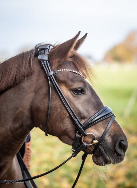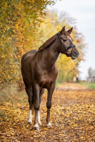 For sale is a beautiful 10-year-old dark chestnut mare (New Forest Pony). She has a height of 152 cm and comfortably accommodates taller riders. She is well-behaved in handling, loading, and farrier visits, with no vices. In the terrain, she is fearless, whether alone or in a group. She has been to the North Sea coast multiple times and simply enjoys it. Her cool and always reliable nature makes her a special family horse. She always gives a sense of security, making her suitable for children or less experienced riders. Under saddle, she shows no bad habits, whether in the indoor arena or on the riding school grounds. She has also been ridden by children in a riding school competition with side reins. She is trained up to A-Dressage (placed in A**-level dressage). She is healthy, regularly vaccinated and dewormed, and is only available to the best of hands. Videos and photos will be sent upon serious interest.