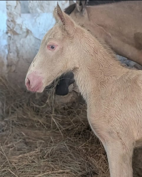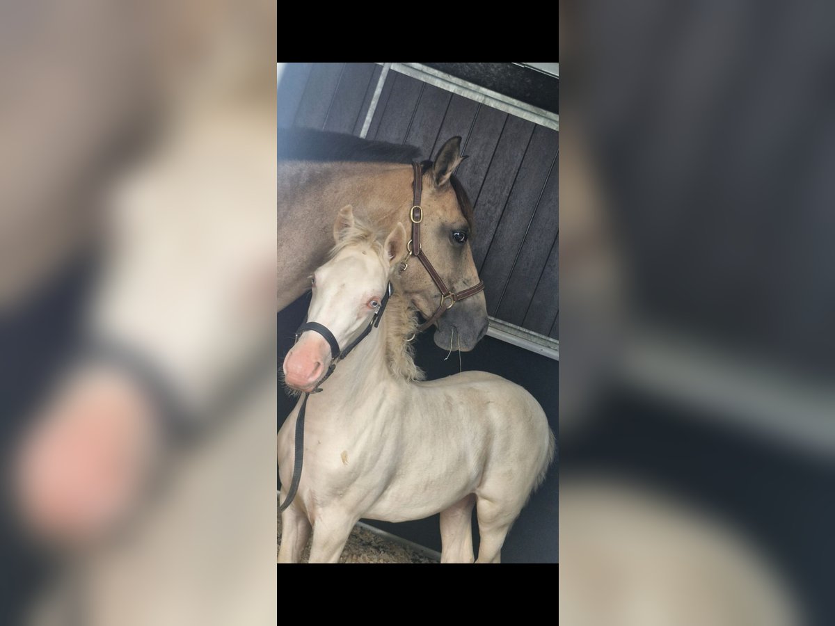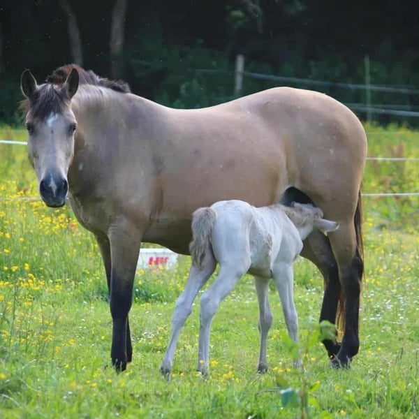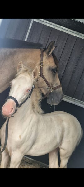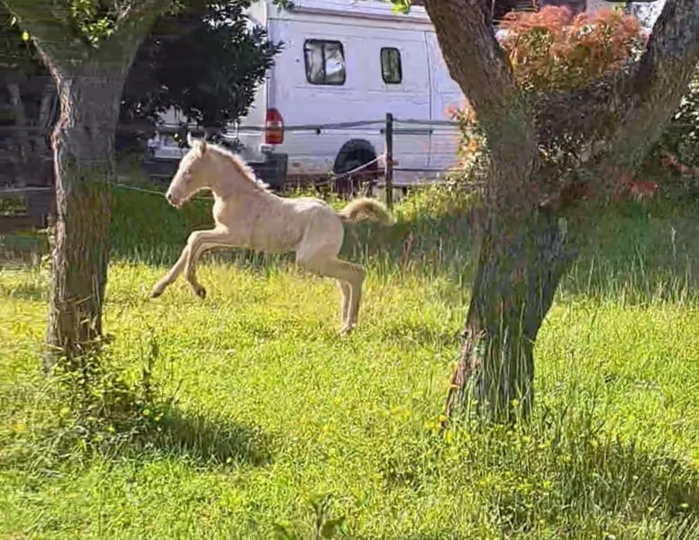 A VENDRE 🌺 Pā'ina d'Ohana 🌺 Pouliche PP NFC du 19/05/2025 Par Bianca de Rajjah et Kim Blue de Kerser (par Ivoire de Civry et Siverlea Honey Nut par Rowhill Senator) Cremello Taille estimée adulte : 1m45 / 1m50 🦒 🩵 Papa (le crème) 🩵 Jeune étalon, tout juste mis au travail avec une jeune production. Il se montre calme, volontaire et polyvalent. Doté d'un pedigree fortement marqué par des lignées anglaises historiques, notamment Siverlea, élevage de référence en Grande-Bretagne et pilier du stud-book New Forest. Ces souches britanniques sont reconnues pour transmettre un excellent modèle, un bon mental et une réelle polyvalence sportive, qualités que l'on retrouve déjà chez bébé Pā'ina 🌺. 🩷 Maman (l'Isabelle)🩷 Mélange original de Pur Race Espagnol X Arabe X Anglo-Arabe X Apaloosa, sensible et dans le sang, qui a offert à Pā'ina un modèle harmonieux et bien proportionné avec du cadre, montrant une arrière main puissante et engagée pour son jeune âge et une bonne sortie d'épaules et d'encolure, un dos porteur et un influx nerveux justement équilibré avec le calme de papa pour avoir le poney de sport par excellence. Maman avec très très fort coup de sauts. Sort en dressage, mais potentiel pas assez exploité à hauteur de son niveau en dressage (mais appuye, commence à Pirouetter au galop, ect.... à la maison) 👩🏼🏫 Éducation & Caractère 👩🏼🏫 - Proche de l'homme, demandeuse de présence et du contact humain, joueuse - Curieuse et commère sur les bords, tout l'intrigue 🤣 - "Parle beaucoup" 😂 (hennit beaucoup avec les humains et adore qu'on lui réponde) 😂😂😂 - Licolé - Tiens a l'attache et sait patienter - Marche en main, céde à la pression, bouge les épaules, les hanches, recule - Pansage complet - Donne les pieds et même avec le maréchal (plusieurs parages OK) - Accepte les couvertures (et donc sangle sous le bidou) - Monte comme une grande en camion (à plusieurs reprises) et voyage très bien - Connaît les chiens, les chats, les voitures, les vélos et même les cerfs-volants 😅 - Connaît les soins à la frontale dans la nuit mdr - Respect des clôtures ++ - Connaît le véto et se comporte comme une grande - Accompagne maman en balade (en liberté car on a la chance d'avoir une forêt fermée), elle se montre très très hardie, ouvre la route, passe partout et n'a peur de rien, c'est sa garderie à ciel ouvert 🫣 Pouliche réfléchie, volontaire et facile, avec un potentiel sportif évident, tout en restant un bébé nécessitant cadre et continuité. 🌾 Mode de vie actuel 🌾 Au pré h24 et 7j/7 depuis sa naissance Petite couverture en hiver car gros froid et humide chez nous MASQUE ANTI UV OBLIGATOIRE sur ses beaux yeux bleus Et CRÈME SOLAIRE OBLIGATOIRE sur sa peau rose Ceci afin de la préserver Et je souhaite qu'elle garde ce mode de vie. Tarif 5🦄🦄🦄 NÉGOCIABLE pour cette petite charmeuse de serpent 🥰 Dispo à partir du 1er Mars 2026 (après sevrage) ou sevrage plus tardif possible a discuter ensemble Visible dans le Loiret (pour le moment car probable déménagement dans les mois a venir) Merci d'envoyer votre projet de vie pour elle et le cadre de vie envisagé. Maison sérieuse demandée (10 milliards d'étoiles acceptées) 😂 Idéal pour : - Projet d'élevage (ce que j'adorerais pour faire perdurer le sang de sa maman qui est ma jument d'enfance) - Cavalier loisir évolutif, souhaitant former un poney à sa main, l'aventure d'une vie 🥰 - Carrière sportive, amateur éclairé - Personne recherchant de la couleur (maman ayant du Pie, du Léopard et du capé, dans ses ascendants) 🎨 Parents visibles sur les dernières photos 📷