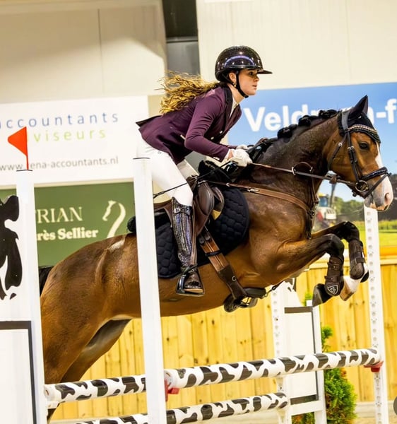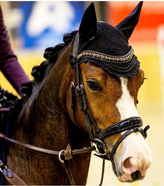 ✨Für alle, die im Viereck glänzen möchten✨ Klijne Bruijnhorst Spoek, Tochter von Spoekedammetjes Nick Stute 5 Jahre alt Stammpferd der Nederlandse New Forest Pony Braun mit weißen Abzeichen Offiziell gemessen auf 1,36 m Ein äußerst lernwilliges Pony, mit dem jeder Tag zu einem Highlight wird. Geeignet für Kinder, die gerne im Viereck hohe Platzierungen anstreben. Spoek zeigt schöne, großzügige Bewegungen und geht stets siegreich nach Hause. Springt jede Hindernis, hält nie an, ohne heiß zu werden. Seit Juni 2024 unter dem Sattel, bereits startberechtigt in M2. Bei den letzten Regionalmeisterschaften Reserve-Mannschaftsmeister in M1. Springt mühelos einen Parcours (0,60 m) und unternimmt gern Ausritte ins Gelände, Wald oder Dünen. Viele Ausflüge auf fremdem Terrain gemacht, leicht zu verladen und sozial im Umgang mit anderen Pferden. Immer gepflegt, vertraut mit Tierarzt und Masseur. Spoek ist frei von Gebrechen. Das ideale Sportpony für ein Kind mit Ambitionen.