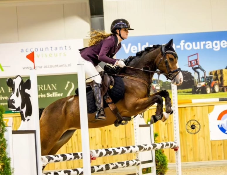 ✨Voor degene die wil shinen in de ring✨ Klijne Bruijnhorst Spoek, dochter van Spoekedammetjes Nick Merrie 5 jaar oud Stamboek Nederlandse new forest pony Bruin met witte aftekeningen 1.36 officieel gemeten Een zeer leergierige pony, waarmee elke dag een feestje is. Geschikt voor kinderen die graag hoge ogen in de ring gooien. Spoek heeft mooie ruime bewegingen en gaat altijd met winst naar huis. Springt elke hindernis, stopt nooit zonder heet te worden. Sinds juni 2024 onder het zadel, inmiddels M2 startgerechtigd. Afgelopen regiokampioenschappen reservekampioen M1. Springt met gemak een parcours (0.60) en gaat graag mee naar bos of duin. Veel mee geweest op vreemd terrein, makkelijk te laden en sociaal naar andere paarden. Altijd netjes bekapt, bekend met de tandarts en masseur. Spoek heeft geen gebreken. De ideale sportpony voor een kindje met ambitie.