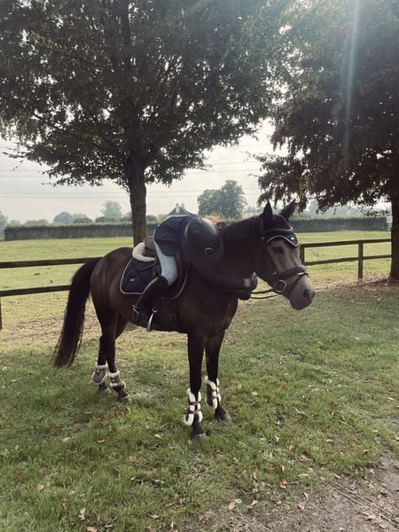 Koetsiershoeve Victory 1.45m Victory is een hele fijne pony onder het zadel en in de omgang. Is makkelijk in de aanleuning en heeft een heel fijn mondje. Ze is B-dressuur geklasseerd en is heel braaf op vreemd terrein. Ze gaat elke week mee naar ponyclubles zowel dressuur als springen. Ze springt simpel een parcours rond. Ze is geschikt voor zowel een wedstrijdruitertje als een beginner. Braaf bij de hoefsmid en op de trailer. Klinisch en röntgenologisch (benen) goedgekeurd. Vp: €15.000 Voor vragen en video’s, stuur een appje naar 06-23184955.