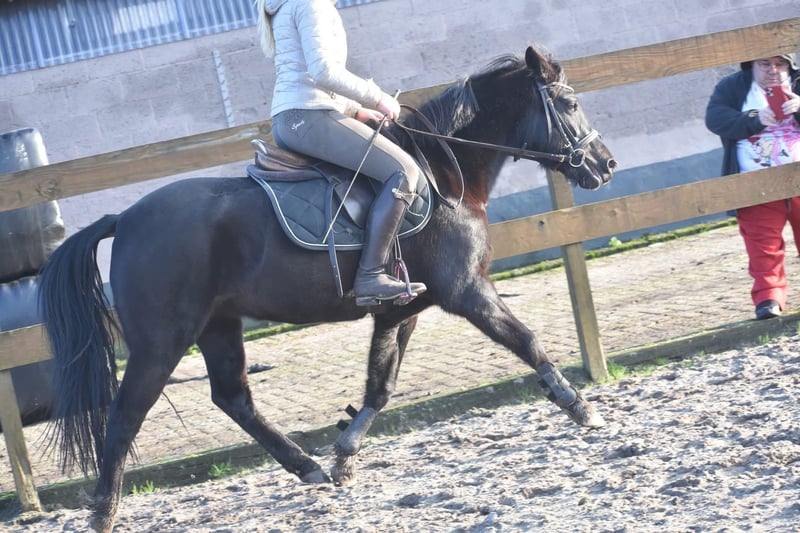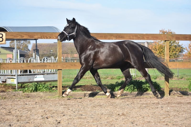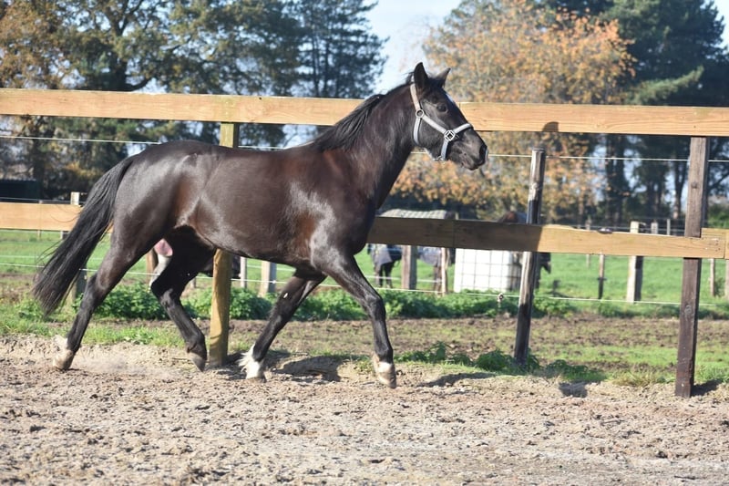 New Forest STERmerrie, 7 jr, correcte grote C Hungario’s Felice ( roepnaam Fee) is een prachtige, 7 jarige New Forest merrie. Het stamboek vindt haar erg correct en daarom heeft ze het predicaat STER gekregen. Klik HIER voor haar verrichtingsonderzoek en HIER voor haar papier. Ze is ca 138 m hoog en qua maat ook geschikt voor een niet ál te grote volwassene. Ze heeft even een tussenstation gehad voor een kind van 3… Buiten het feit dat dit wel heel erg jong is geven wij graag aan dat kinderen en pony’s altijd begeleidt moeten worden, zeker in het begin. Als je bij Fee in het midden van de bak begeleidt gaat het hier en voorheen prima. Ze is tot nog toe buiten erg fijn en dat doet ze ook het liefste. Het vorige baasje wil graag contact hebben met de nieuwe eigenaar. Ze schrijft :” Fee is een echte tut pony en houd van uren poetsen, Erg braaf bij een zekere ruiter. Braaf in het bos en kijkt van niks op. Gaat makkelijk de trailer op Meerdere keren mee op oefenwedstrijd geweest en ook dat doet ze super braaf. Springen vind ze erg leuk. Ze is eigenlijk super nuchter. Is onlangs door de tandarts behandeld, in bezit van een recent rapport. Incl. zadel en hoofdstel compleet € 5750,-