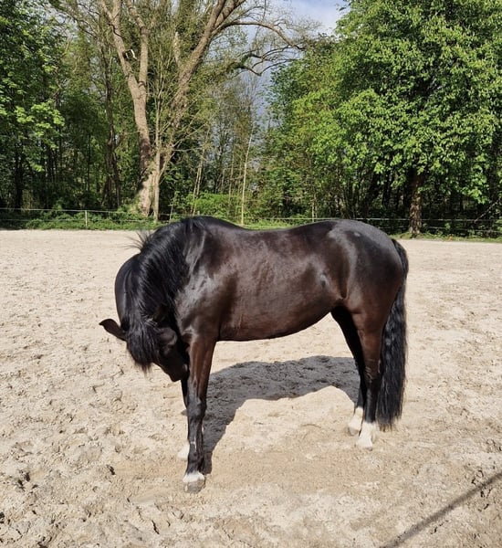 With a heavy heart, I am selling my pony mare due to personal reasons. Haywards Roberta is currently ridden for leisure, but last summer she gained her first competition experience. She achieved several placings and wins in the Working Riding (WBO) discipline. She shows particular interest in jumping, both in free jumping and in cross-country courses. She also enjoys groundwork. As an extremely fearless, reliable pony, she is confident alone in the field and last summer spent a few days on holiday at the North Sea without a companion horse. During this time, she even waded through a deep creek in a group. Generally, Haywards Roberta is very calm, curious, sweet, and social with other horses. She walks patiently with children on her back. Pony-wise, she has a bit of a stubborn streak, so she is not suitable as a beginner’s pony. Her calmness and open-minded nature towards all living beings are especially noteworthy—she greets dogs, children, and cats kindly. Veterinary visits (usually for vaccinations, with no known health issues apart from some itchy skin areas) and hoof care appointments are no problem for her. Haywards Roberta will only be sold if the fit is right. I am looking for an experienced, 5-star home where she can continue to be supported and also enjoy variety. It is important to me that she is seen as a family member and that the goal is to find her a “forever home.” A thorough introduction is gladly possible. Both sides should be confident that it’s the right match. Videos can be sent upon request. To prevent riding tourism, a fee of 25 euros will be charged for the trial ride, which will be deducted from the purchase price if the sale goes through.