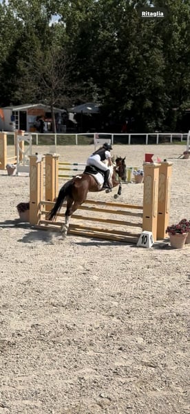 5-year-old pony born in Italy, officially registered in the equine registry, up-to-date on all vaccinations, with official measurements. Registered with FISE for 2025. Well-behaved and excellent for obtaining certificates in categories 70/80/90.
