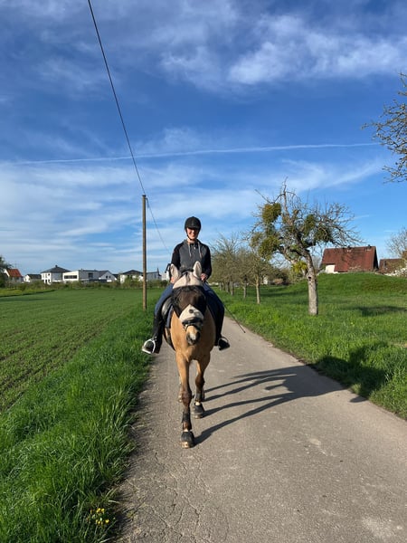 Leider muss ich meinen schönen 7 jähriger Wallach mit guten GGA und besonderer Farbe aus Zeitgründen verkaufen. Er ist ein Polnisches Warmblut und hat ein Stockmaß von 163 cm. Ich habe ihn mit 2,5 Jahren gekauft und langsam angefangen Auszubilden. Seit 2 Jahren wird er dressurmäßig geritten und ans Gelände gewöhnt. Bodenarbeit und Longe kennt er natürlich auch. Maraton benötigt einen sicheren und erfahrenen Reiter der ihn weiter Ausbildet. Erfahrung mit Jungpferden wäre wünschenswert, denn er testet auch mal seine Grenzen im Umgang oder erschrickt sich im Gelände. Auf dem Platz zeigt er sich lernwillig und arbeitet meistens gut mit. Aufgrund einer alten Koppelverletzung am Hinterbein ist er nicht für den großen Sport geeignet. Die Verletzung hat er sich 2022 zugezogen und ist sehr gut verheilt außer einer Narbe ist nichts zurück geblieben. Laut Tierärzten ist er voll reitbar. Aktuell steht er in einer Paddockbox mit täglichem Koppelgang im Sommer und im Winter. Auf der Koppel steht er aktuell mit einem weiteren Wallach, was gut klappt. Er stand auch schon in größeren Gruppen wo er immer eher rangniedrig war. Solltest du ein junges Pferd suchen und die Herausforderung lieben, dann melde dich gerne bei mir.