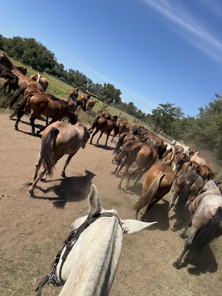 THE HORSES OF LOS POLEROS What is special about our horses? We pride ourselves on the quality of our horses, which are bred on the farm and meet the high standards expected of Argentine polo ponies. As a member of the Argentine Polo Breeding Association, we offer horses for every price range and for players from beginners to high goal ponies. Here at Los Poleros Polo Farm we work with the Natural Horsemanship approach to breaking in our horses. Although the process takes a little longer, the results surpass all other techniques and the horses usually remain healthy and ready to play well into old age. The process begins as soon as the foal is born. We invest a lot of time in building trust in humans from foal age. You must always remember that the horse is a flight animal, so its innate flight reflex must be broken down to create a strong relationship between human and horse that will last a lifetime. We start with the ponies at the age of four and a half and train them very gently. Our horses are ready for sale at the age of six. We believe it is important to sell our breeding horses only after they have played two summer seasons in Argentina. This is because we want our customers to buy a polo pony that has had enough playing time and experience to learn everything it needs to know about the game and is ready for any player. An active polo pony of over 20 years is not uncommon. Our horses are also extremely popular as pure leisure horses. Their balanced and reliable nature, high rideability and smooth gaits make them a top leisure partner outside of polo. The Argentine polo pony can be used in all areas of equestrian sport. Here in Argentina, the selection and standard of polo ponies available for purchase is much higher than anywhere else in the world. Over the years, Argentina has developed a polo pony that excels in the game, which is due to the way the horses are bred, broken in and trained. Come and visit us at the ranch and get a personal impression. If required, we will take care of all formalities up to transportation to your preferred country using the most reputable horse export companies in Argentina and Europe. For prices, availability and further inquiries about our breeding, training and sales program please send an email to Reitschule@Kronwitter.net or Estancialospoleros@gmx.com. TAKE YOUR TIME OUT and visit us in Argentina. Pure relaxation. For all horse lovers and especially polo fans, Los Poleros Farm offers a wonderful place to enjoy the Argentinian way of life. A very special kind of vacation. Los Poleros Farm is run as a family business and therefore has a very homely and personal touch that makes this place so special and unique. During your stay you will have the opportunity to ride a variety of horses for sale. AUTENTIC POLO RANCH near Buenos Aires Los Poleros Polo Farm is only an hour and a half drive from Buenos Aires city center and Ezeiza Airport (Ministro Pistarini). The world-famous professional clubs in Pilar can be reached in two hours and are only 50 minutes away from Cañuelas, the new center of polo. It is home to the famous polo clubs La Dolfina and La Natividad. Your "all-round carefree package" begins with a pick-up at the airport. At Los Poleros Polo Farm, you will stay in one of our four authentically Argentinian furnished rooms. These are located directly on the polo field with an excellent view of the countryside and horses. Each of the cottages has double beds or two single beds, air conditioning, daily room cleaning and free laundry service. W-Lan is available everywhere. If required, we can organize additional accommodation in the immediate vicinity. You can relax in our hammocks in the shade of the old trees or by our pool. We speak English, Spanish, German and Russian. ARGENTINIAN CUISINE at Los Poleros ClubHouse Traditional cuisine is an important part of your stay at Los Poleros Polo Farm. All meals are freshly prepared by our Argentinean chef, who sources all ingredients from local farmers. We organize regular asados as they are an essential part of our Argentine culture. Sandwiches, tea, snacks and beer are served after the chukkas so guests can relax after an energetic day on the course and enjoy the beautiful sunset. We can cater to all vegetarian and dietary requirements, please let us know in advance. POLO TEACHING in the intensive program The Polo Farm offers various riding and polo activities tailored to the needs of our guests, making us an ideal place for individuals or groups of different abilities, ages and interests. With our intensive polo program ranging from stick-and-ball lessons to tactics talks and daily chukkas, we make sure you get the most out of your stay. WEEKLY TOURNAMENTS to prepare for the season If you are interested in an exceptional training program combined with outstanding chukkas, you can participate in various tournaments with other clubs every weekend during the season. DAILY CHUKKAS At Los Poleros, chukkas are played in the afternoons with instructors, professional players and other club members. Guests get the full Argentine polo experience and we make sure that your polo and riding skills improve during your stay at Los Poleros. PLAY POLO with Los Poleros We offer programs for every level - from experienced players to beginners: daily chukkas, weekly tournaments, intensive polo lessons and tailor-made training programs by our professional instructors. The ultimate polo vacation destination in the Buenos Aires area. ACCOMMODATION With or without polo, you can book your stay in one of our four rooms in our boutique hotel. Simply relax in the countryside and enjoy the authentic Argentine lifestyle. Alternatively, we can organize a private house nearby with home-cooked breakfast, lunch and dinner. POLO TOURNAMENTS See the best players in the world We can organize trips to the world famous Argentine Palermo Open - an unforgettable event. Tickets are not included in our all-inclusive package. We are also h