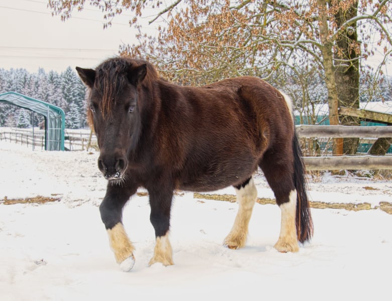 Unser Callimero, ein liebenswerter Pony Wallach, sucht ein neues Zuhause, in dem er weiterhin Kinderaugen zum Strahlen bringen darf. Daten: • geboren am 18.08.2015 • ca. 1,17 m Stockmaß • Rappschecke Callimero ist ein echtes Verlasspony: brav, ausgeglichen und absolut nervenstark. Er kennt den Umgang mit Kindern bestens und ist bereits im Hippolini-Unterricht mitgelaufen, wodurch er sich geduldig, zuverlässig und kooperativ zeigt. Er ist sowohl im Umgang als auch beim Reiten unkompliziert, geht sicher ins Gelände – auch alleine – und lässt sich selbst von ungewohnten Situationen wie Veranstaltungen, Musik oder Trubel nicht aus der Ruhe bringen. Im täglichen Umgang präsentiert er sich freundlich, neugierig und menschenbezogen. Ein Pony, das Vertrauen schafft und Kindern Sicherheit gibt. Ein idealer Partner für Familien, Reitschulen oder Kinder, die ein ehrliches und verlässliches Pony suchen.