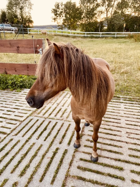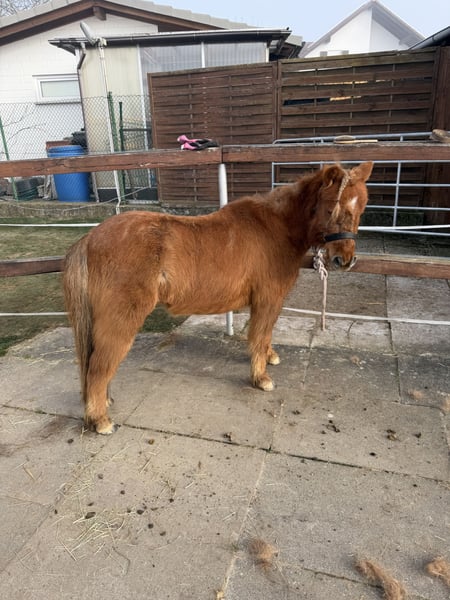 Schweren Herzens suchen wir einen entsprechenden, liebevollen Platz für unseren Teddy (sein Name im Pass lautet Lendorfs Varo) Das ist Teddy: - Dt. Partbred Shetland Pony - Wallach - 11 Jahre (06.2014) - Dunkelfuchs mit langer Mähne - Schlanke Figur, kein typisches Moppelpony (Stckm 1m und wiegt ca 180kg) KEIN Kinderpony !!! - Im Winter macht er seinem Namen alle Ehre , typisches Shetty Winterfell - Sozial, eher rangniedrig, sehr verspielt, neugierig, folgt einem auf Schritt und Tritt - Kennt anbinden, putzen, longieren (auch am Kappzaum), Arbeit im Roundpen, spazieren gehen, liebt Freiarbeit - War in 2025 zur professionellen Fahrausbildung und kennt es zweispannig gefahren zu werden, dort ist er sehr fleißig (anfangs noch eher ungeduldig) - sehr lauffreudig , viel Energie , fleißigen Schritt - Hatte im Mai 24 einen Hufreheschub, wurde geröntgt und Hufe dementsprechend angepasst durch Bearbeitung, brauchte und hat aber kein Beschlag und seitdem auch nie wieder was gehabt. - Zähne jährlich von Zahnärztin gemacht - Vollständig geimpft und entwurmt - Nur in Offenstallhaltung oder Paddocktrail abzugeben - Teddy ist es gewohnt Heu und Stroh aus Netzen zu fressen - Er verträgt stundenweise Wiese, am besten überständiges zuckerarmes Gras im Hochsommer , und kein typisches Weidelgras im Mai ! - Als Einstreu kennt er Leinenstroh, Weizenstroh , Strohpellets oder auch Späne und er liebt Knabberäste - Er kennt Verkehr, Landmaschinen (die mag er nicht so doll, aber rennt nicht weg!) und Hund, Katze, Hühner, Gänse, Lamas, Rinder usw - Teddy ist nicht professionell eingeritten, meine Tochter (3 J) saß schon ab und zu drauf ABER er ist nicht als Kinderpony geeignet, auch aufgrund seiner Energie und seines Charakters nicht. Speziell gegenüber kleinen Kindern ist er sehr respektlos ! - Er ist verschmust, liebt lange Krauleinheiten, putzen mag er sehr gern, Hufe geben geht hinten nicht einwandfrei ! - E-Zaun sicher, wenn ordentlich Strom drauf ist! - Kein Ekzemer! - Es ist kein Notverkauf, sondern ich wünsche mir für Teddy ein absolut 100% passendes „für immer Zuhause“ - Wir geben ihn nur ab weil es mit unseren Kindern nicht funktioniert ! - Bei ernsthaftem Interesse bitte ich um kurze Vorstellung per Nachricht, gerne schicke ich auch weitere Bilder und Videos und wenn alles soweit passt kann es selbstverständlich zu einem Kennenlernen kommen :-) - Platz vor Preis
