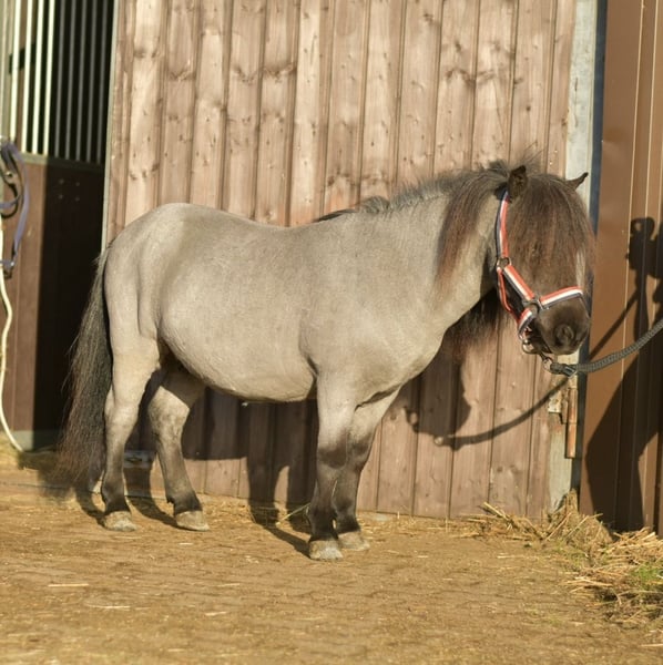 **Droompony Blacky zoekt nieuwe vriendjes!** Maak kennis met onze betoverende Shetland-ruin Blacky! Deze lieve kleine knul heeft een stokmaat van 85 cm en weet jong en oud te betoveren. Blacky is een veelzijdig pony dat zowel bereden als aangespannen wordt. Hij heeft een zachtaardig karakter en is in de omgang ontzettend lief – ideaal voor kinderen! Tijdens het rijden tovert hij altijd een glimlach op de gezichten van de jonge ruiters en springt hij met enthousiasme over hindernissen. Vooral houdt hij van vrijheidsdressuur, waar hij zijn speelse kant kan laten zien. Zijn opleiding aan de hand maakt hem tot een betrouwbare metgezel die zowel onder het zadel als als handpaard uitstekende prestaties levert. Blacky is kerngezond en werd geboren in 2011. Hij is niet alleen een ideaal maatje voor buitenritten, maar houdt ook van fietsen en zou graag weer veel kinderen blij maken. Of het nu als schoolpony is of als trouwe vriend voor de vrije tijd – Blacky brengt plezier en vreugde in elke stal! Laat u betoveren door deze kleine, schattige knul!