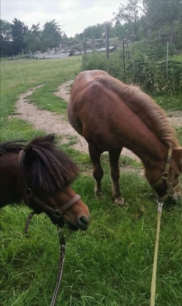 Verkaufe schweren Herzens hier mein Shetlandpony Karli mit komplettem Zubehör da ich ihm zeitlich einfach nichtmehr gerecht werde und er mir zum rumstehen viel zu schade ist. -super liebes Kinderpony -ca. 1m -Fuchs -Wallach -Rangniedrig -18 Jahre (05.03.2007) - vorbelastet auf Hufrehe Karli ist ein super liebes, neugieriges, verkuscheltes und aufgeschlossenes Pony. Er ist perfekt als Kinderpony geeignet da man mit ihm jeden Quatsch machen kann, er keine Unarten hat, mit Kindern super vorsichtig umgeht und ein totales Verlasspony ist. Im Gelände ist er unerschrocken weshalb spazieren gehen egal ob alleine oder mit anderen kein Problem ist. Er kann auch von kleinen Kinder problemlos gehändelt werde. Er ist auch mal vor der Kutsche gelaufen allerdings nicht bei uns. Da er rangniedrig ist lässt er sich von anderen Pferden vom Futter wegscheuchen und braucht deshalb einen Futterplatz bei dem er seine Ruhe hat. Er stand jetzt einige Monate rum und hat nicht viel gemacht da ich die Zeit nicht hatte. Er ist lieb beim Schmied. Er wird nur in gute Hände abgegeben da ich ihn vom Händler habe und gerne vermeiden würde das er dort wieder hinkommt. Aktuell steht er in einem Offenstall er kennt aber auch Boxenhaltung. Platz vor Preis! Bei Interesse oder weiteren Fragen gerne anschreiben.