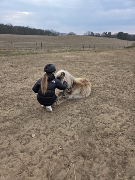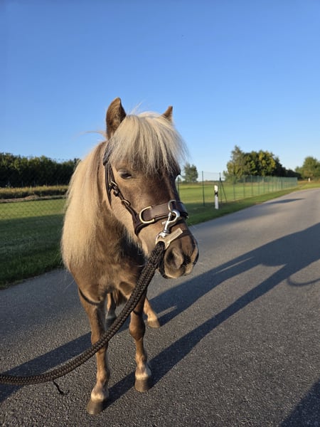 4-jähriger Dt. Partbred Shetty Wallach, Windfalbe, 82 cm Beschreibung: Schweren Herzens müssen wir uns auch von unserem kleinen Partbred Shetlandpony Desperado (Milky), trennen, da wir die private Pferdehaltung komplett aufgeben. Auch ihm wünschen wir ein wunderbares neues Zuhause, denn wir geben unsere private Pferdehaltung aus persönlichen Gründen vollständig auf. Milky haben wir am 14.09.2024 direkt vom Züchter als Hengst gekauft, um unsere kleine Herde zu erweitern. Kurz danach haben wir ihn legen lassen. Er ist ein junges, neugieriges und sehr liebenswertes Pony, das uns schnell ans Herz gewachsen ist. Über Milky: Geboren: 08.05.2021 (4 Jahre) Stockmaß: ca. 82 cm Rasse: Deutsches Partbred Shetlandpony (Dt. Pb ShP) Farbe: Windfalbe Geschlecht: Wallach Charakter & Alltag: Milky ist ein sehr liebes und menschenbezogenes Pony, sobald er Vertrauen gefasst hat. Er beobachtet aufmerksam, lernt schnell und entwickelt eine enge Bindung zu seiner Bezugsperson. Wir sind oft mit ihm alleine im Gelände spazieren gewesen, was er zuverlässig und ohne große Aufregung meistert. Er möchte seinem Menschen gefallen und ist draußen sehr brav. Zwei Dinge, die er aktuell noch übt: Beim Aufhalftern braucht er etwas Geduld und Vertrauen Decken mag er momentan noch nicht Mit liebevoller, klarer Anleitung lässt sich das aber gut weitertrainieren. Gesundheit & Pflege: Regelmäßige Impfungen (nächste Influenza Impfung: Januar 2026 / nächste Tetanus Impfung: April 2026) Entwurmung alle drei Monate (zuletzt am 30.11.2025) Haltung bei uns: Offenstall mit Sandpaddock und 24/7 Heu Er ist kerngesund und geht problemlos auf den Anhänger! Besonderheiten / Wünsche: Wir wünschen uns für Milky ein liebevolles Zuhause, in dem er weiterhin viel Aufmerksamkeit und Geduld bekommt. Kein Verkauf an Händler! Schön wäre es, wenn wir ihn – wie unsere anderen Pferde – gelegentlich besuchen dürfen! Bei Interesse freuen wir uns über eine kurze Vorstellung, gerne auch über WhatsApp: 015224402128.