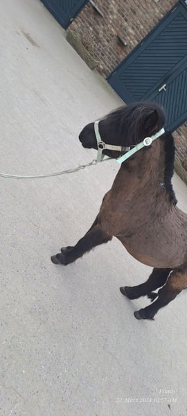 Vente poney Shetland entier – Idéal pour les loisirs et les hobbies ! Nous proposons à la vente un adorable poney Shetland entier, né en 2021. Ce petit poney noir possède un tempérament amical et une taille compacte. Avec une hauteur au garrot d’environ 100 cm, il est parfait pour les enfants et les débutants. Ce petit poney noir est en bonne santé, bien entretenu et connaît les bases du manejo. Il est idéal pour les promenades et les soins quotidiens. Pour toute question ou information complémentaire, je suis à votre disposition. Ce charmant poney attend une famille aimante qui lui offrira un joli foyer ! *pas de vente urgente
