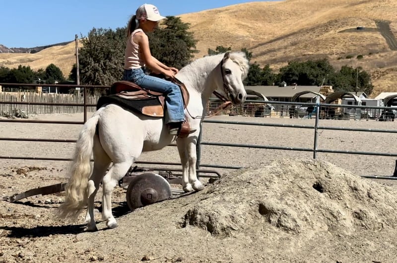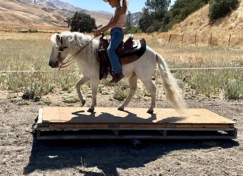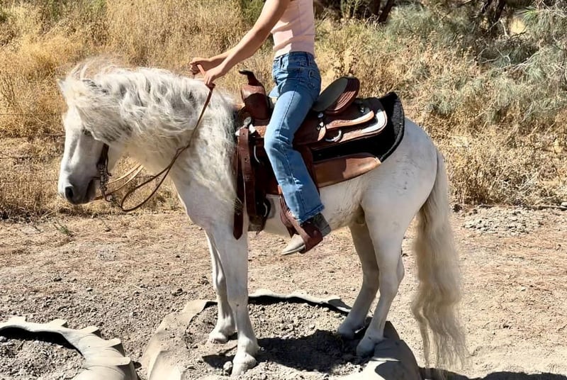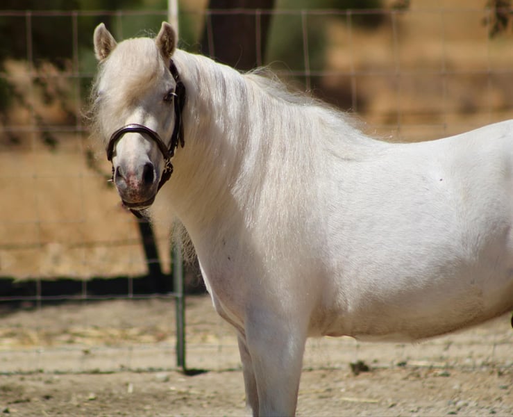 ONLINE AUCTION Place your bids at www.PlatinumEquineAuction.com Starting Bid $3500 Auction ends September 22nd, 2024 Need a new saddle? Check out White Rock Saddles on our website or Facebook! Coco is a 5-year-old white Shetland pony with a unicorn-like appearance and a personality reminiscent of a friendly puppy! He stands 10.2 HH or 42 inches. He has undergone extensive socialization, having been raised from a colt mostly inside a house, resulting in an exceptionally sweet and personable nature. He always wants to see what you’re doing and will follow you everywhere you go. He’s been used to leadline toddlers down city streets, with loads of cars and loud noises. He is very familiar with the hustle and bustle of town and nothing seems to phase him. He has also been rode out by older kids and will go anywhere you point him, demonstrating his adaptability and willingness to explore diverse environments. He goes over all the trail obstacles like the big horses and is very willing! He will neck rein and has even trotted around the playday patterns. Coco also does some tricks and will lay down and is starting to sit. He has been hauled to local rodeo/events and doesn’t blink an eye. Everyone loves Coco, horses, farm animals and people! He stands at the cross ties, clips, picks up all his feet, loves to be groomed and bathed. He doesn’t have a mean bone in his body and loves treats. His gentle disposition and captivating presence make him an invaluable companion. They just don’t come any prettier OR any sweeter than him! His little saddle will be INCLUDED with him. He is located in Bitterwater, CA. For more info contact Cheyenne Rey 831-537-8746. ONLINE AUCTION Place your bids at www.PlatinumEquineAuction.com Starting Bid $3500 Auction ends September 22nd, 2024 Need a new saddle? Check out White Rock Saddles on our website or Facebook!